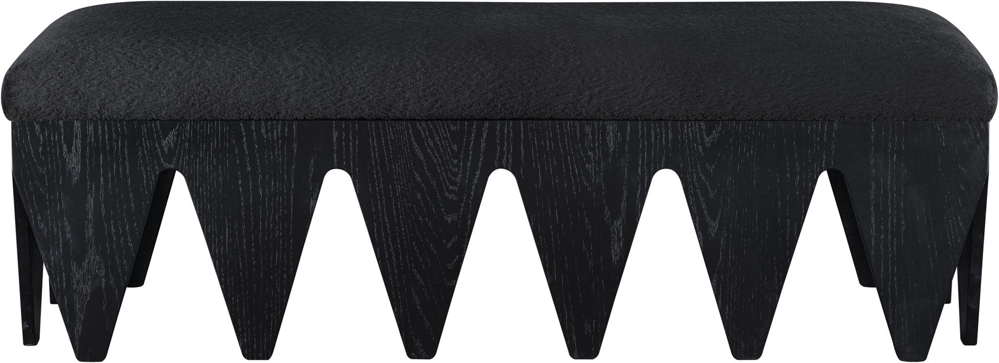 Bold and architectural, the Altair velour fur fabric upholstered bench combines avant-garde design with plush luxury. The seat is covered in soft velour fur fabric, offering an indulgent texture that invites you to sit and relax. Its distinctive rich black oak veneer wooden base, featuring sharp, angular legs, brings a sculptural, modern touch to any room.