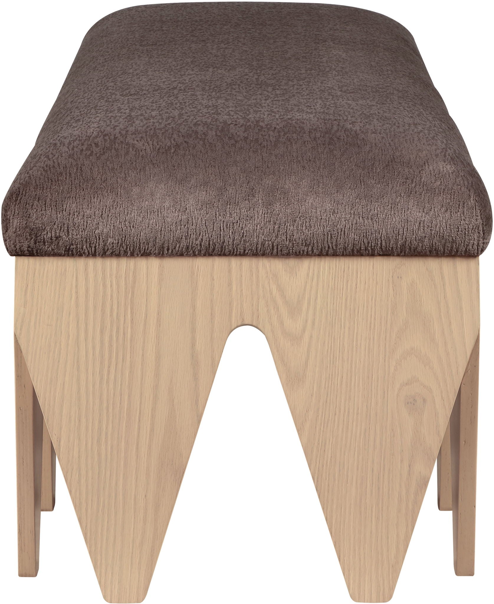 Bold and architectural, the Altair velour fur fabric upholstered bench combines avant-garde design with plush luxury. The seat is covered in soft velour fur fabric, offering an indulgent texture that invites you to sit and relax. Its distinctive rich natural oak veneer wooden base, featuring sharp, angular legs, brings a sculptural, modern touch to any room.