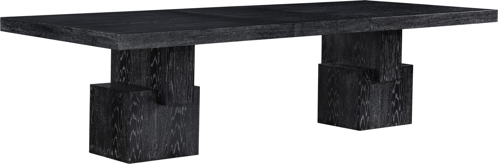 Wow guests with the artsy charm of this Anzio oak dining table. This table has a decidedly utilitarian design that makes it a no-brainer for minimalist decor while its simple lines and unexpected style elements ensure that it's the center of attention in your modern dining area. Oak veneer construction lends a rugged, rustic vibe to the table, which comes equipped with two leaves so that you can make it smaller or larger depending on the crowd you're entertaining.