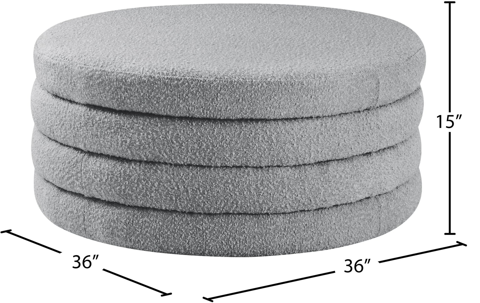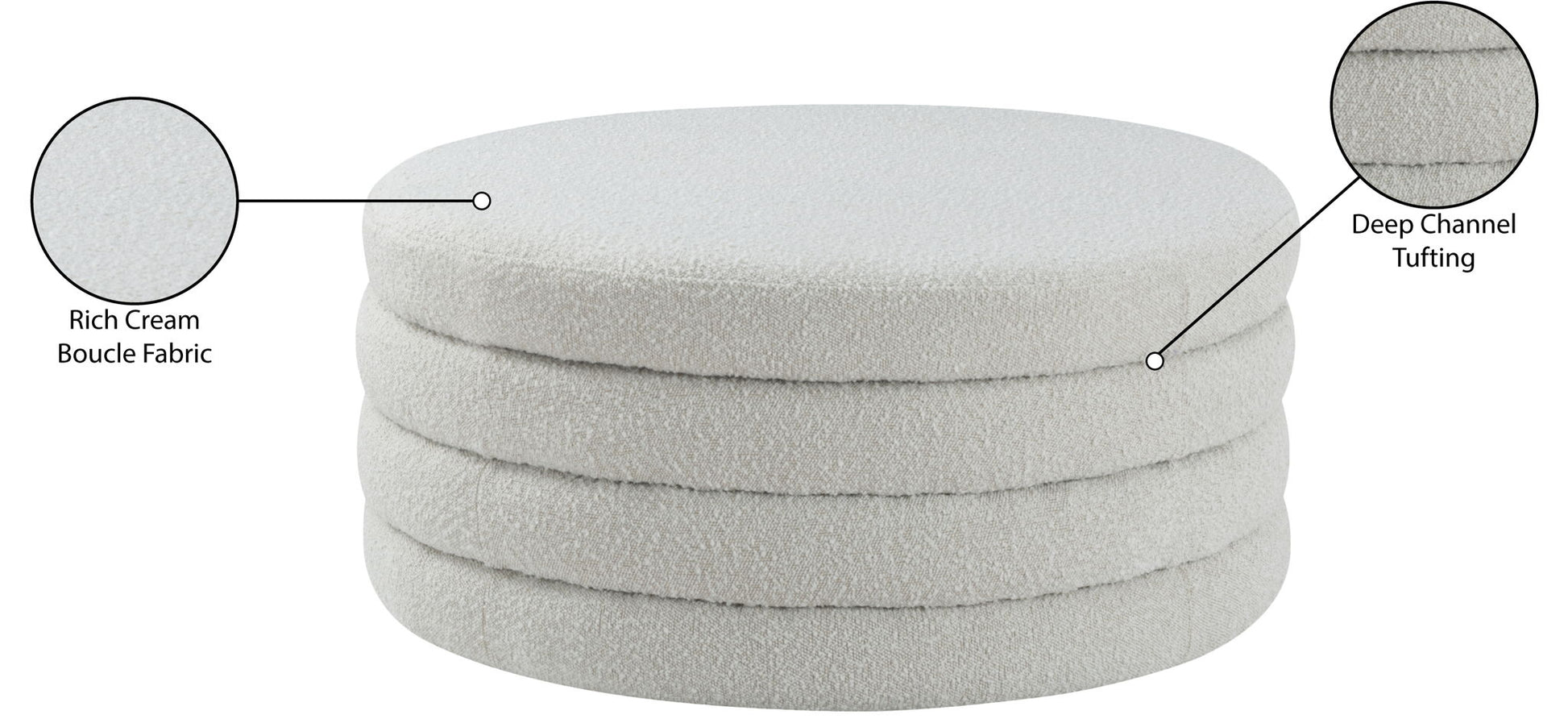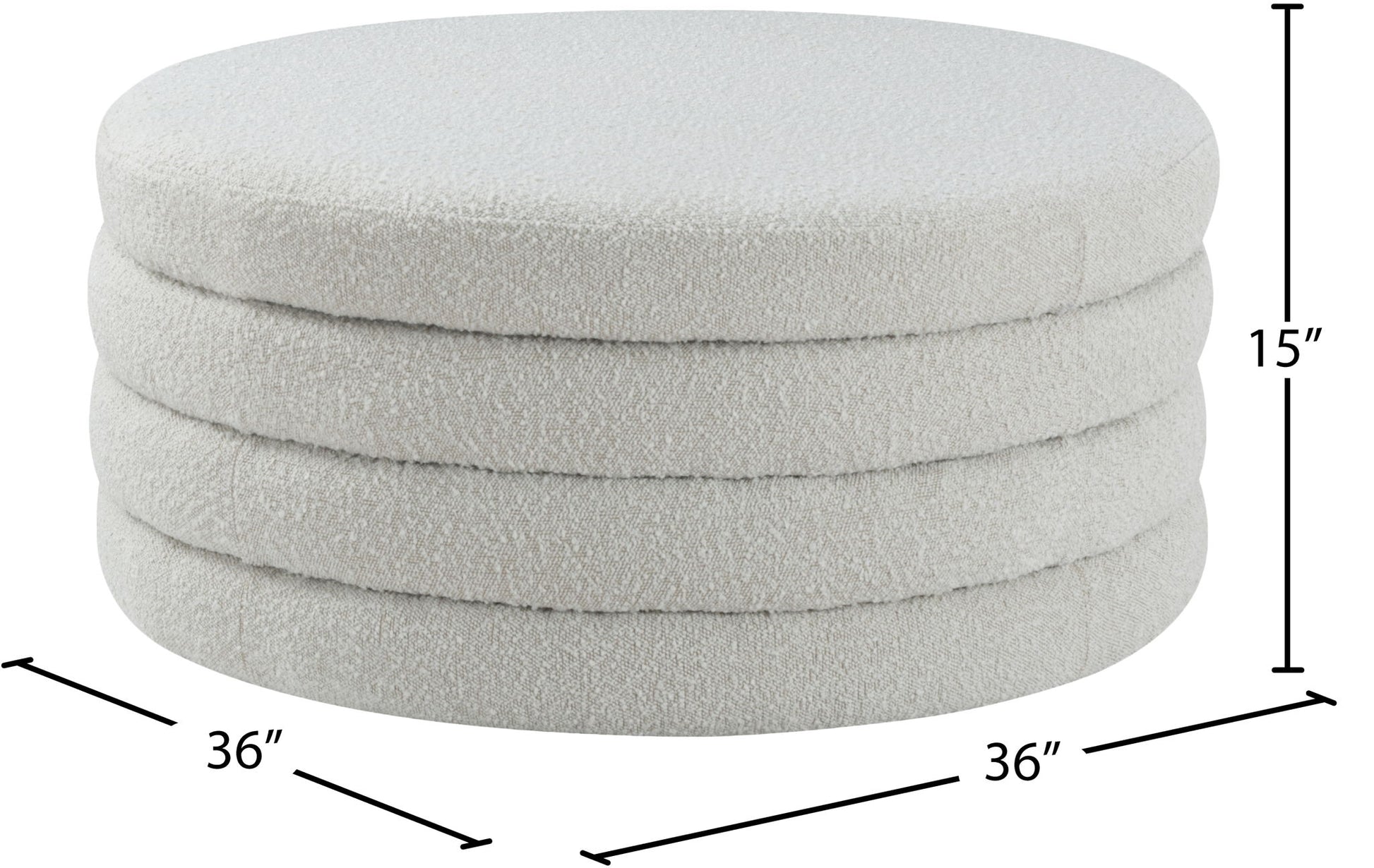 Liven up your living space with this Aphia boucle fabric ottoman/coffee table from Meridian Furniture. Featuring rich boucle fabric upholstery, this ottoman offers softness to the touch and style to the eye. Deep channel tufting gives the appearance of multiple layers stacked together, making it a contemporary piece perfect for any modern home. Pair this ottoman with a matching sofa, or use it as a stool to provide extra seating when you have visitors.