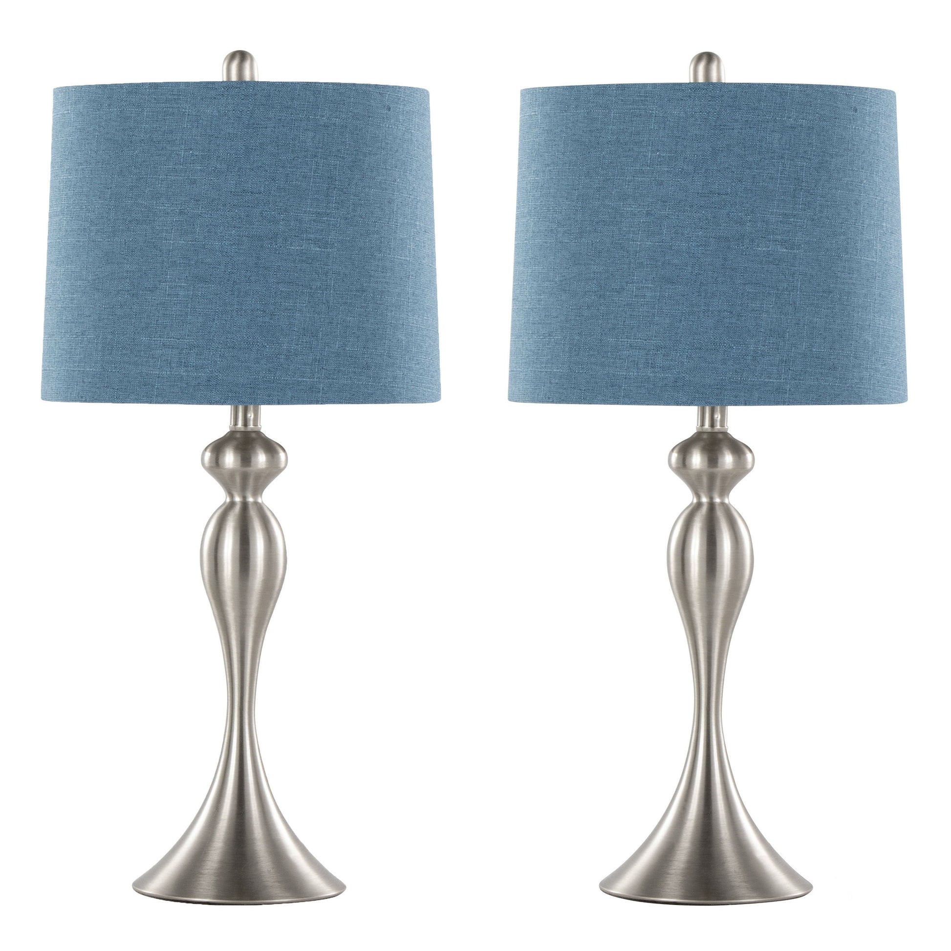 Ashland - Contemporary Table Lamp (Set of 2) - Nickel / Moroccan Blue Slub