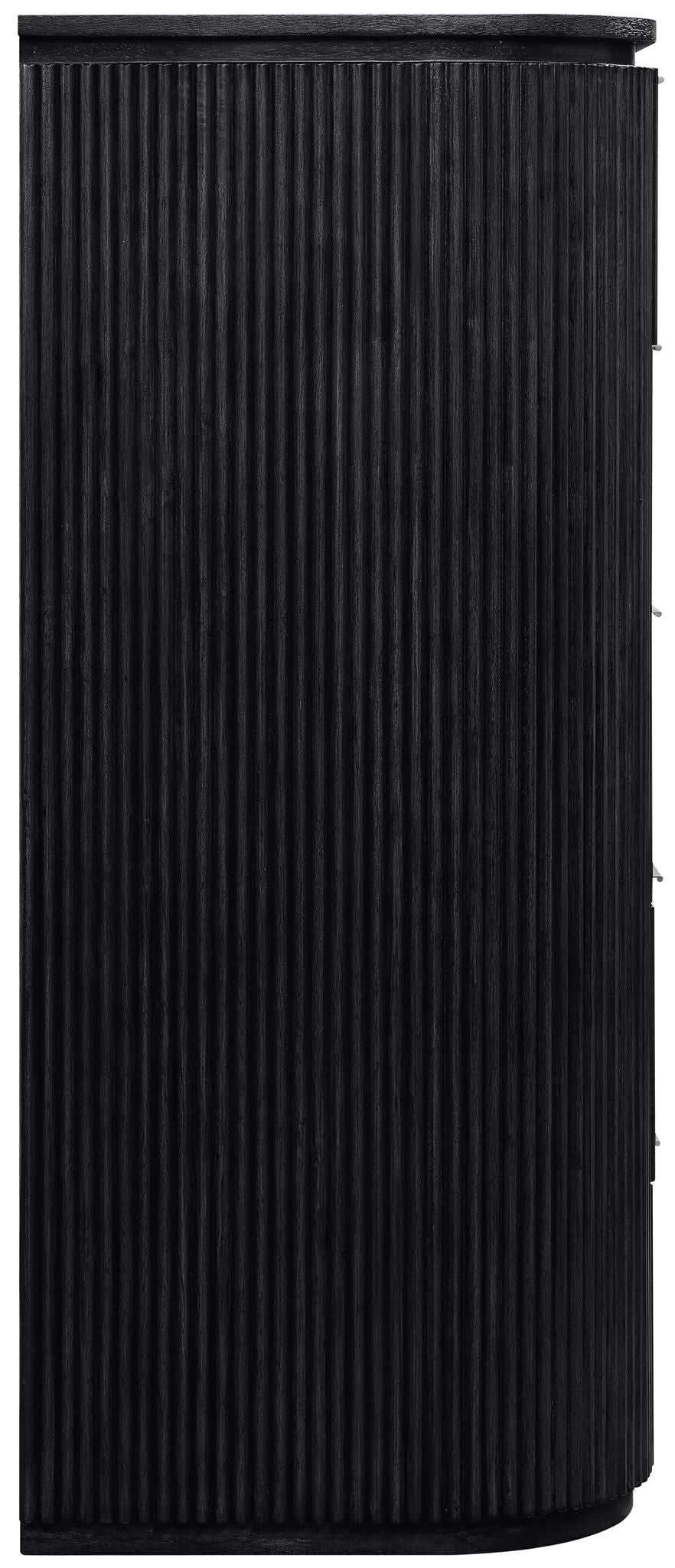 Texture takes the lead with the Astrid solid wood and oak veneer chest. Wrapped in sleek fluted wood and finished in a deep, moody tone, this contemporary design is both bold and refined. Whether styled in a bedroom or living space, it delivers effortless storage with standout style.