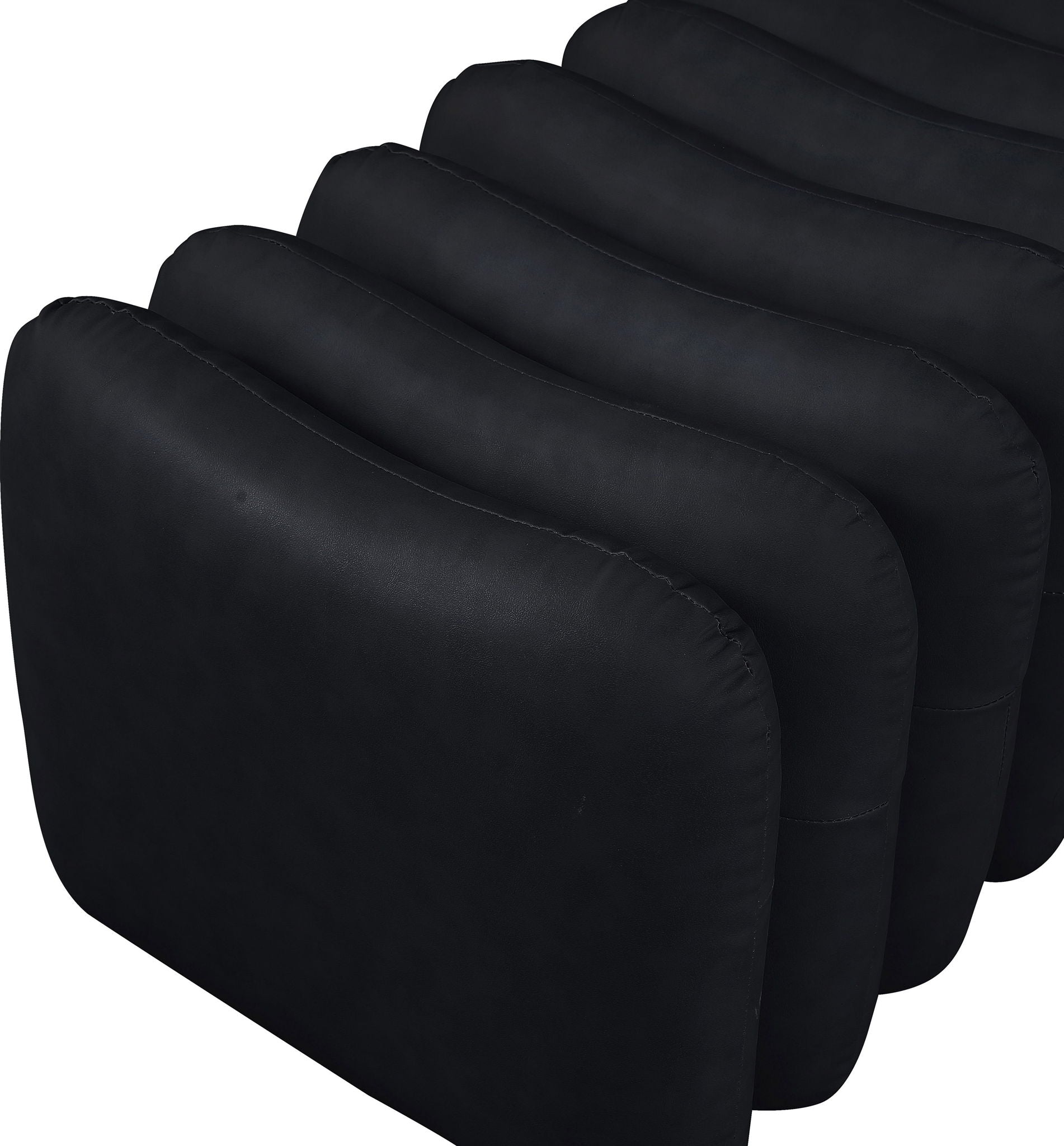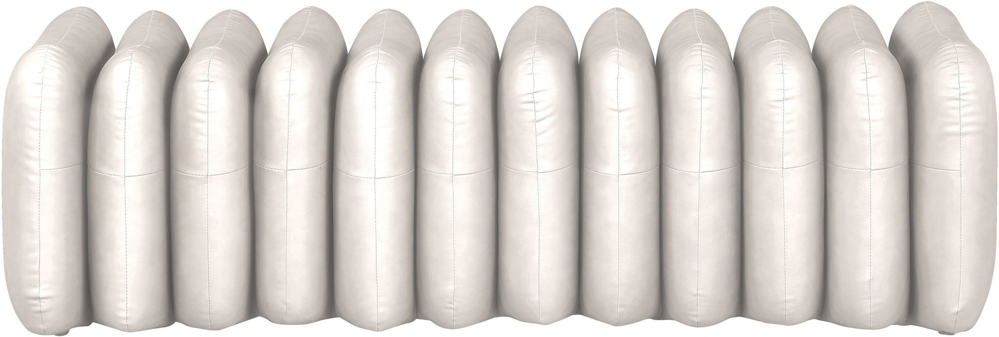 A bold and modern statement piece is the Atticus vegan leather upholstered bench that will elevate any room. Its unique, segmented design adds visual interest, while the plush vegan leather upholstery provides comfort and style. Perfectly versatile, this bench is an eye-catching addition to your home.