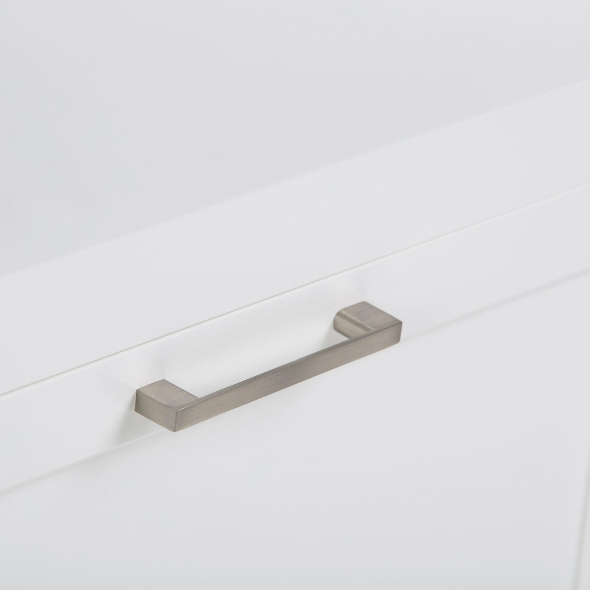 - Features one (1) pull open door. Contemporary Brushed Nickel handles.