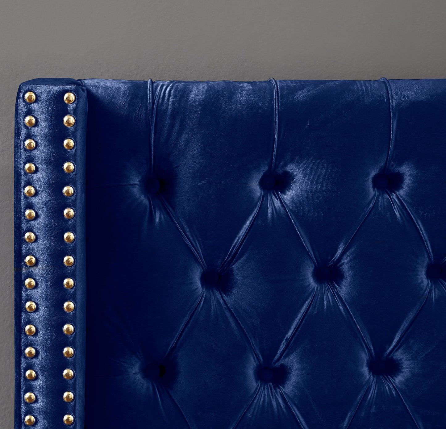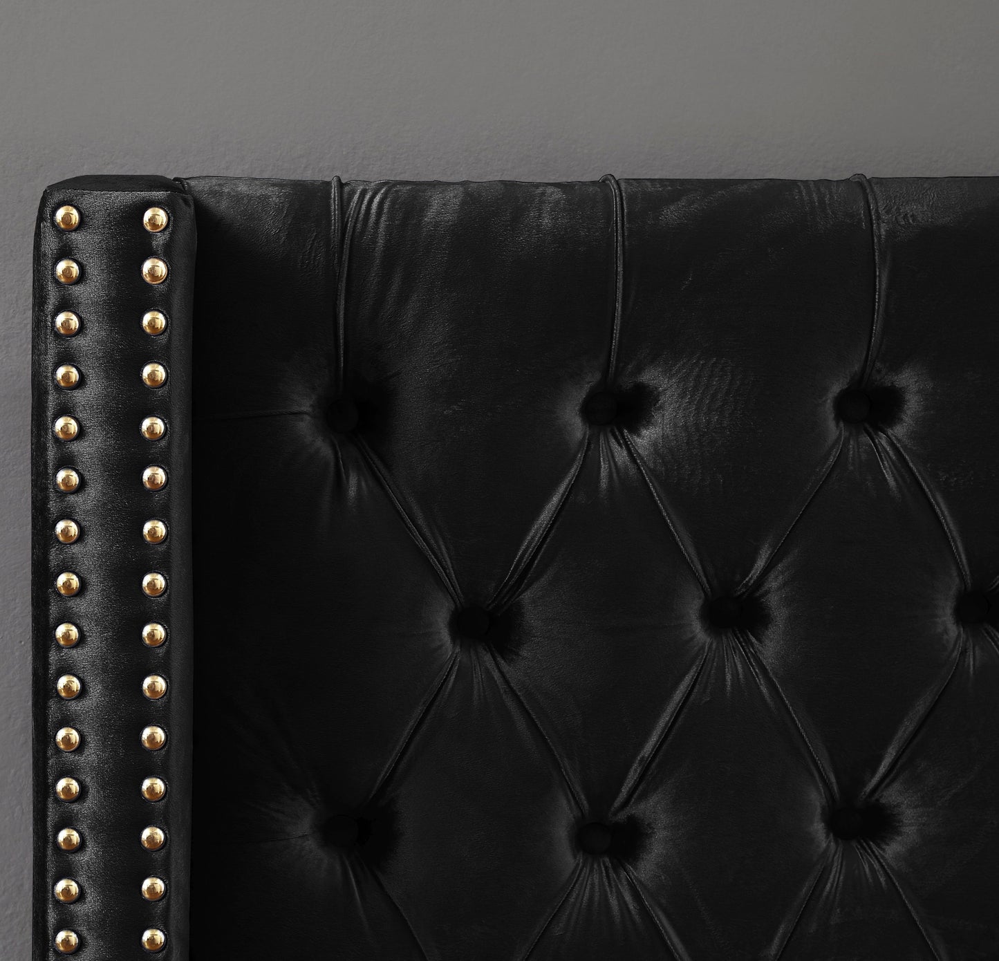 Elegant and eye-catching, the stunning Barolo Bed from Meridian Furniture is the perfect addition to any bedroom. velvet covers the deep tufted design. Strength and beauty is guaranteed with a solid wood frame and stainless steel legs.