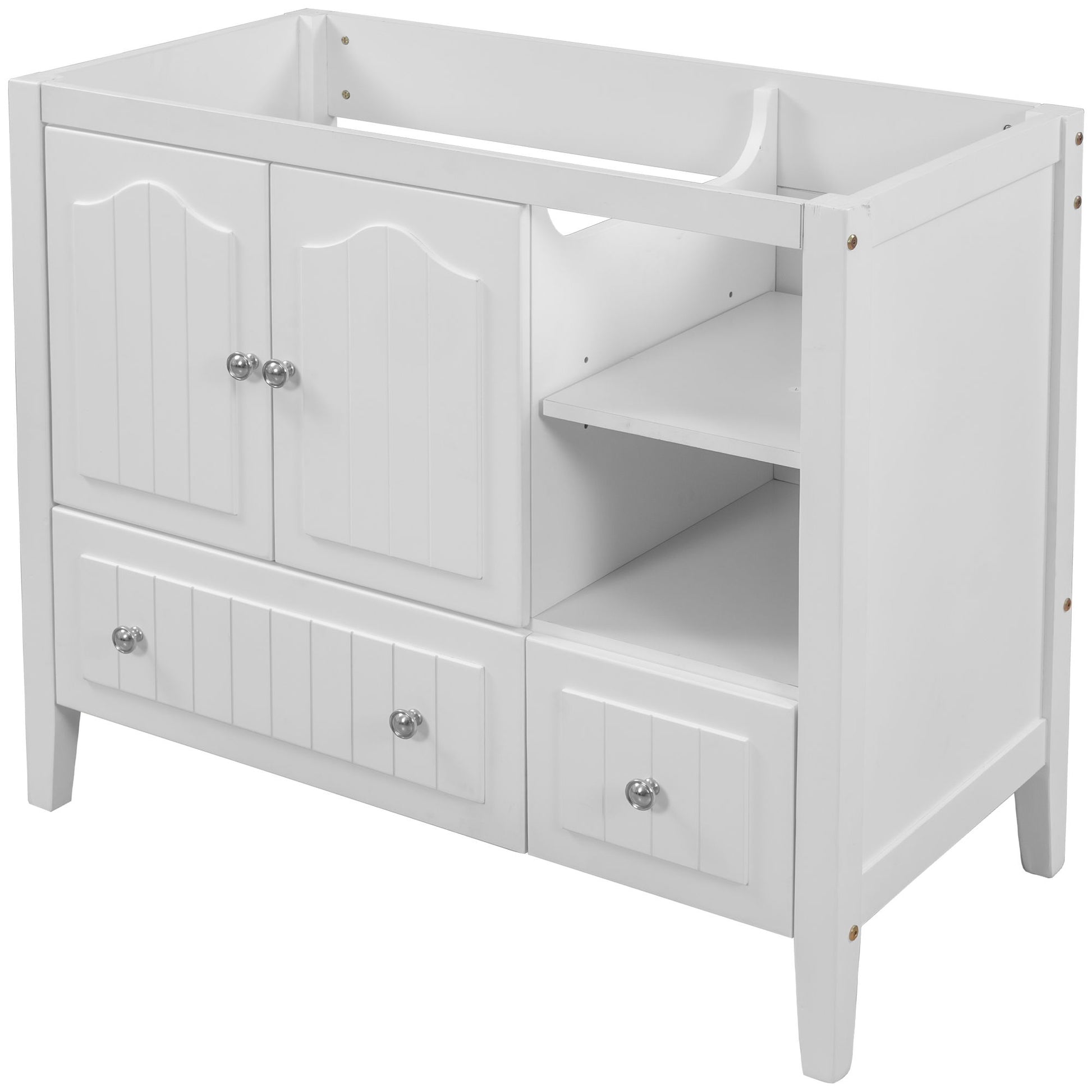 Bathroom Vanity Base Only, Solid Wood Frame And MDF Boards - White