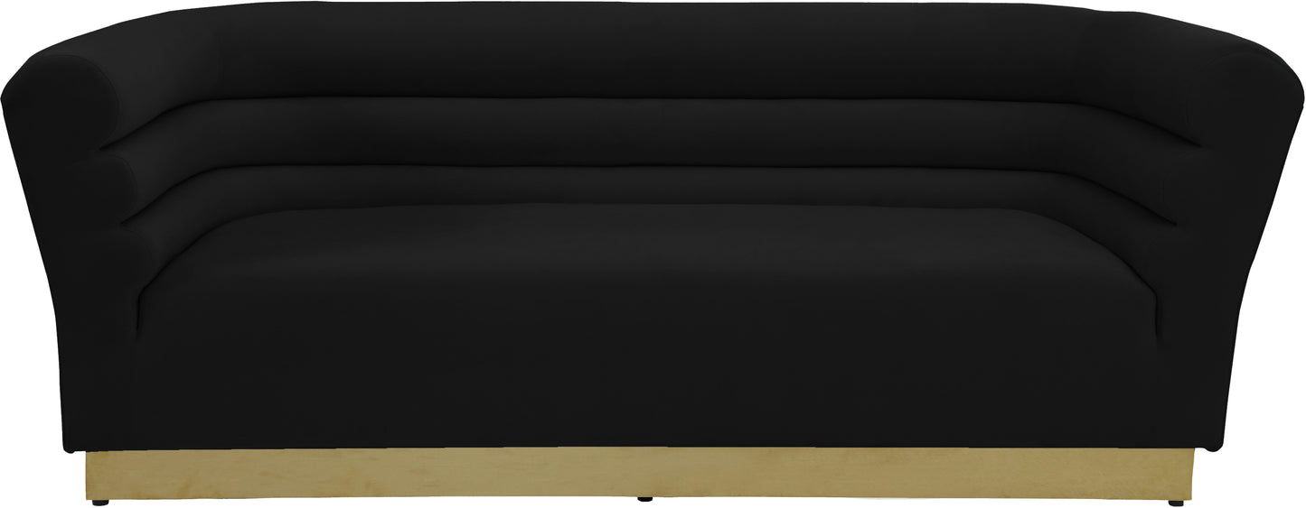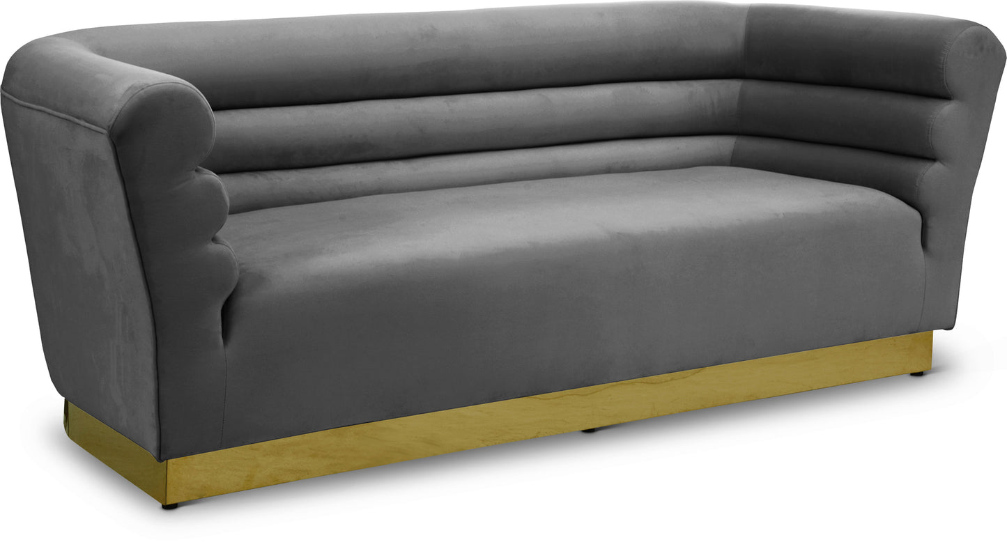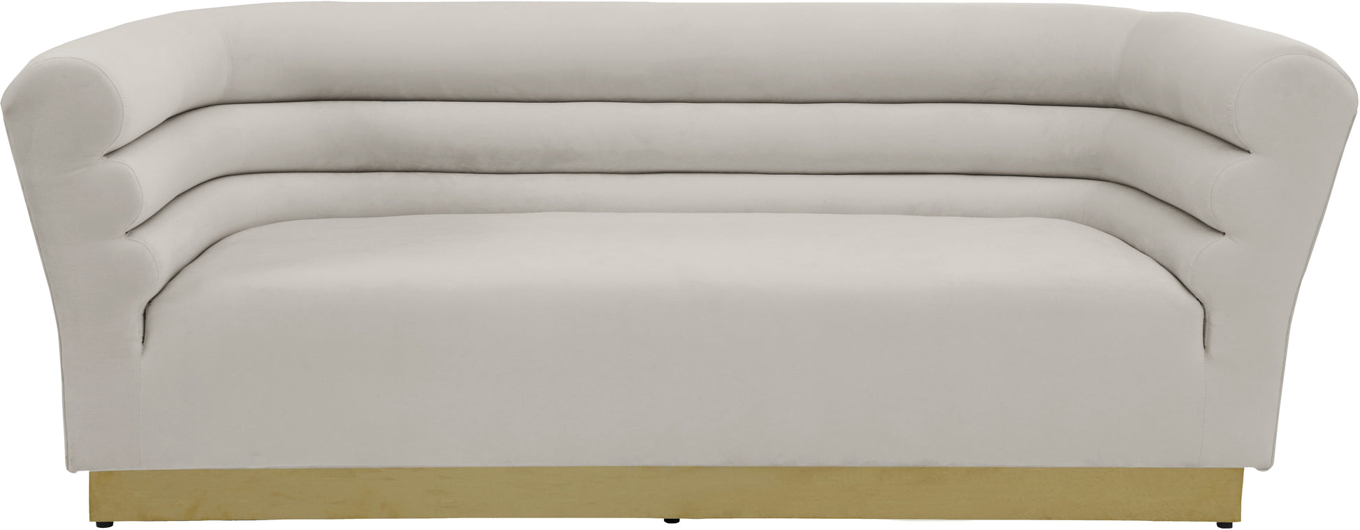 Add a bit of pizzazz to your living space with this Bellini Sofa from Meridian Furniture. velvet upholstery offers you a luxurious place to curl up with a good book or rest in front of the TV after a long day, while horizontal Channel tufting creates texture and style. Its uniquely curved shape makes this piece a perfect addition to any room in your modern home.