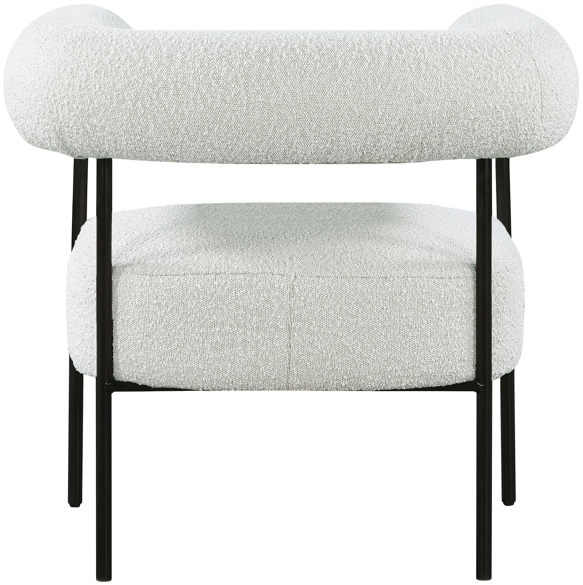 Modernize your home with this Blake accent chair. Featuring rich boucle fabric and a matte metal frame, its contemporary design is sure to catch the eye of all your house guests. Crafted from a mixture of iron and foam, this accent chair is sturdy enough to seat just about anyone. Its curved back provides a comfortable resting place for your spine, and its thick foam cushion gives you a plush place to sit.