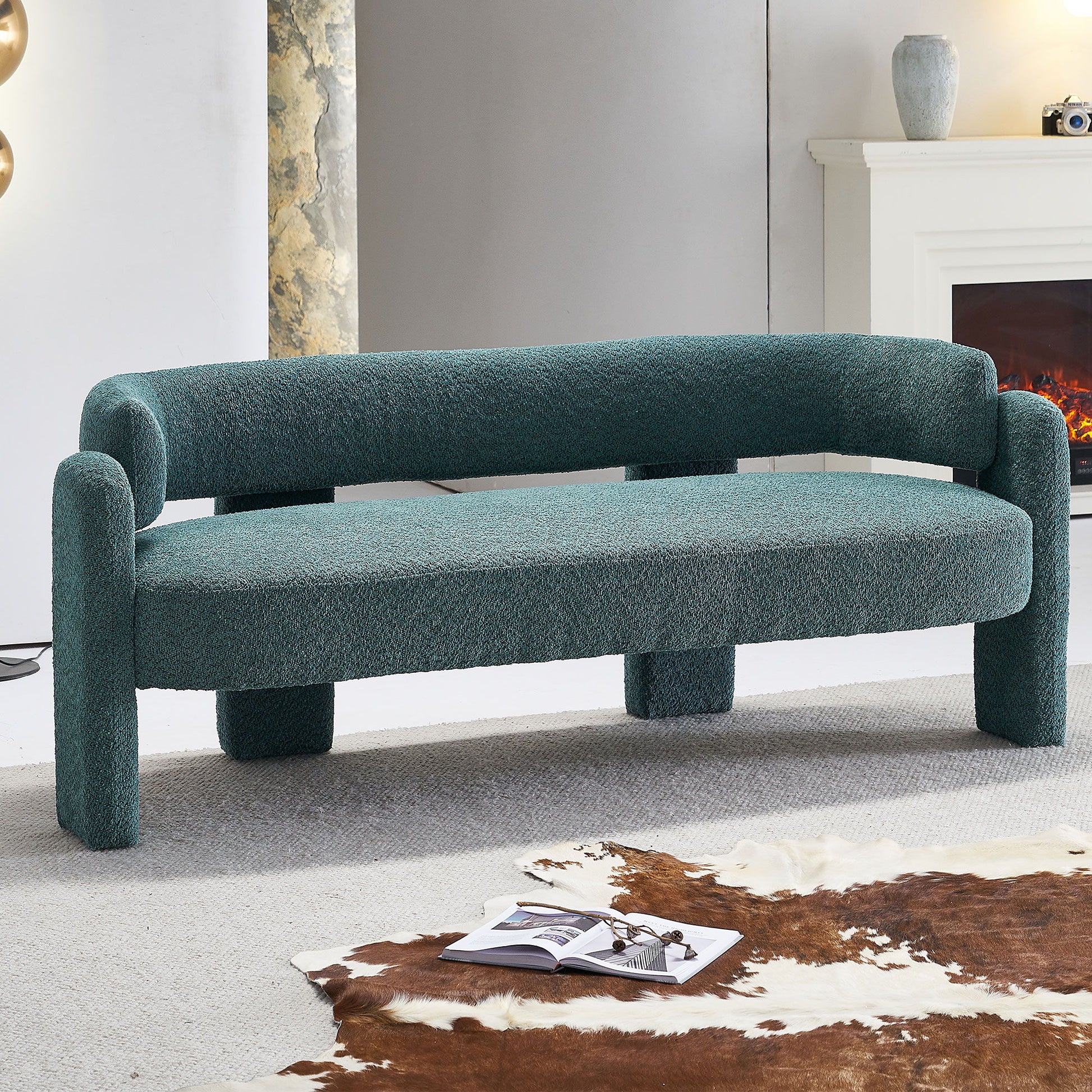 75.59" Wide Boucle Upholstery Modern Sofa For Living Room - Green