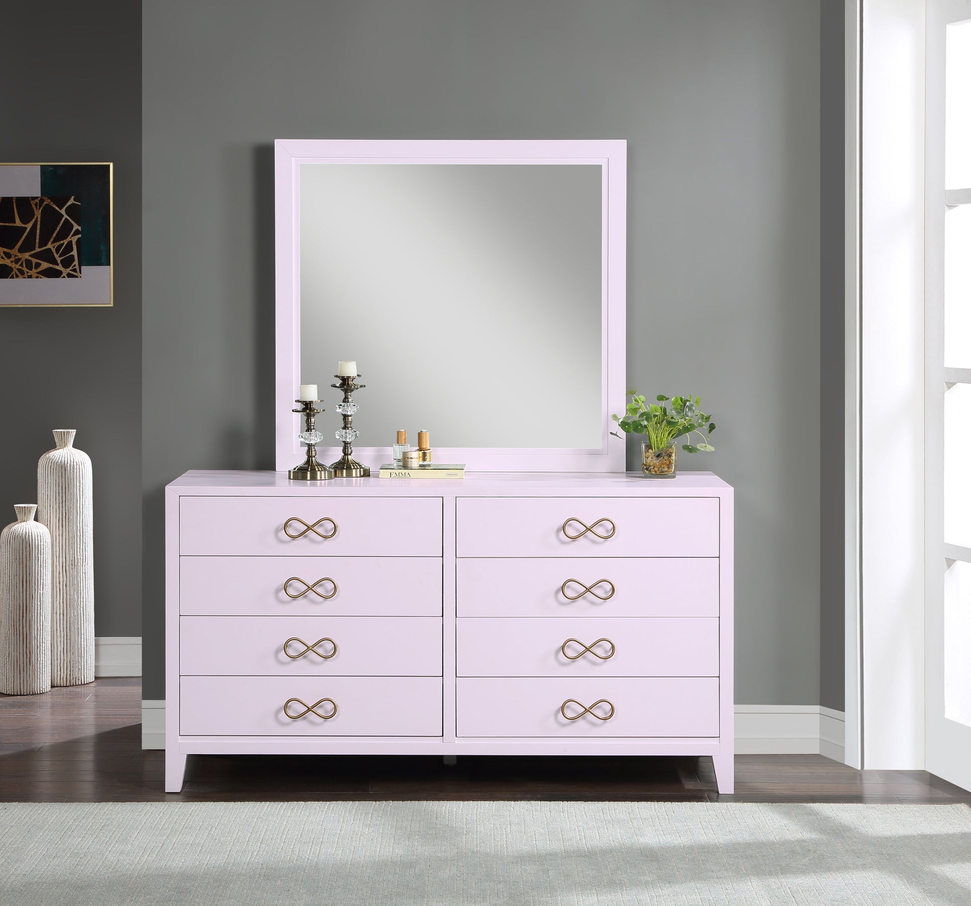 Bring unique elegance to your bedroom with this Bowtie mirror from Meridian Furniture. Its light pink color adds a touch of femininity to your living space.