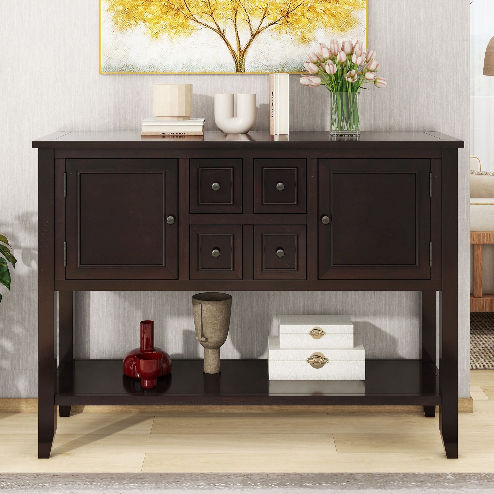 Cambridge Series - Console Table With Ample Storage 4 Small Drawers Bottom Shelf - Espresso