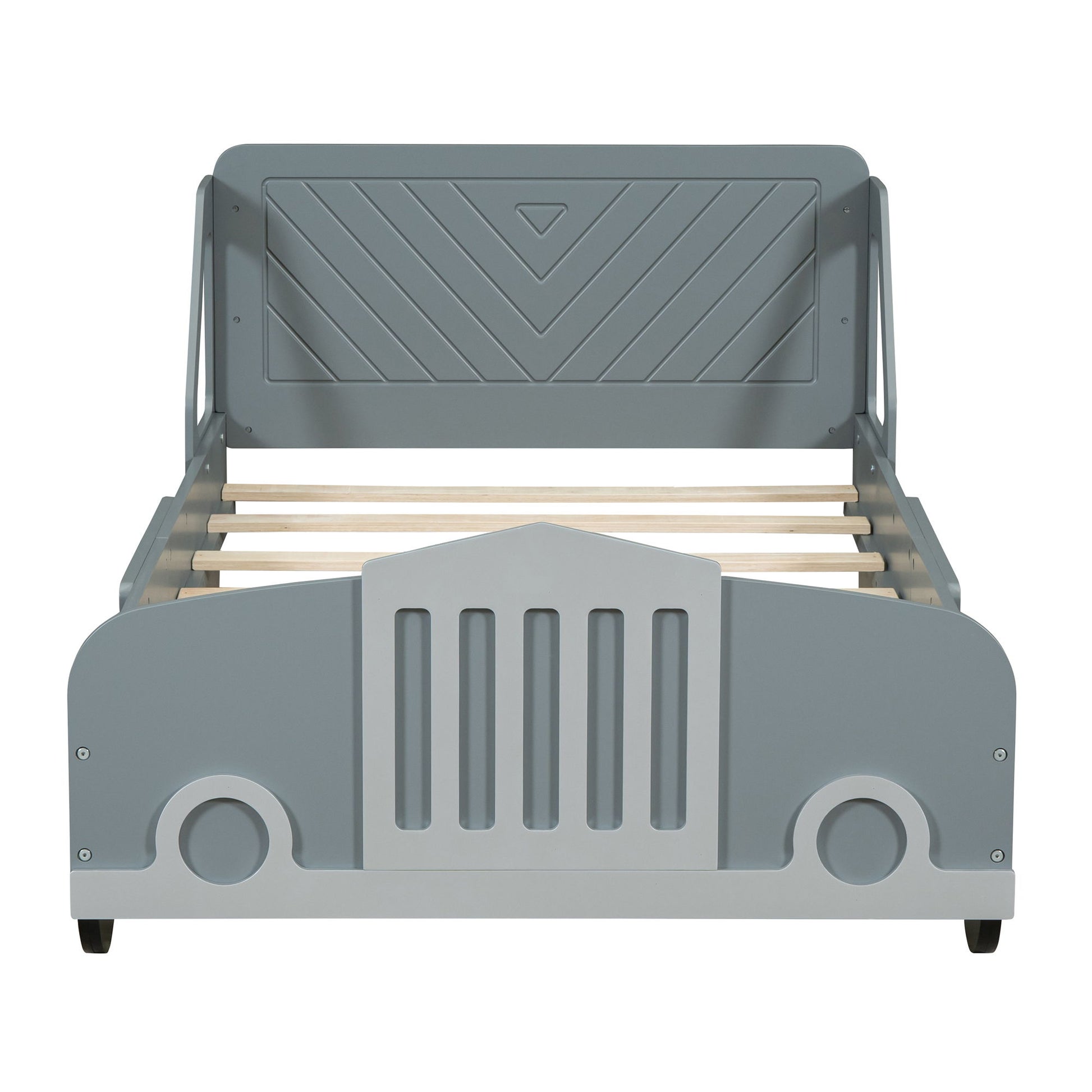 Full Size Car Shaped Platform Bed With Wheels - Gray