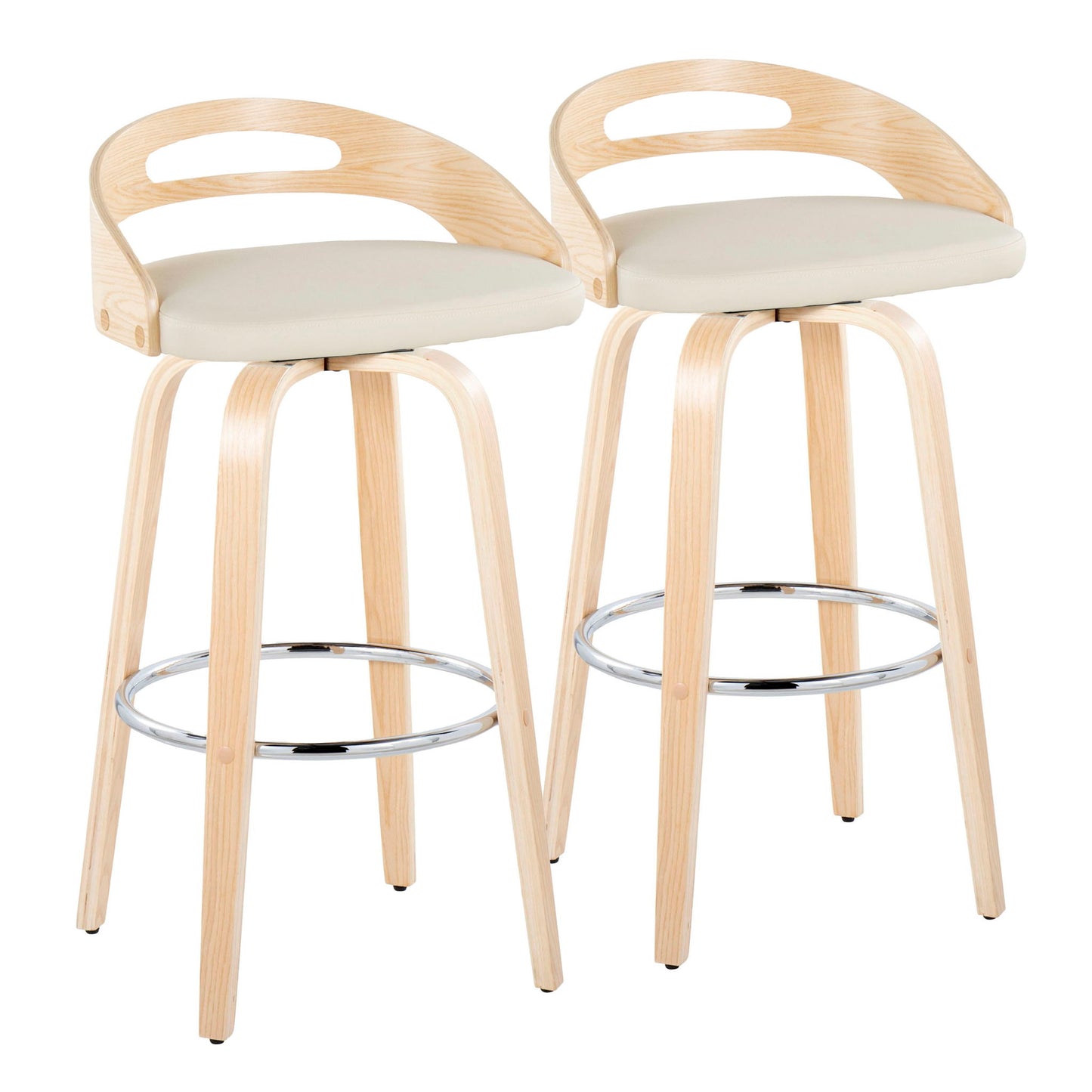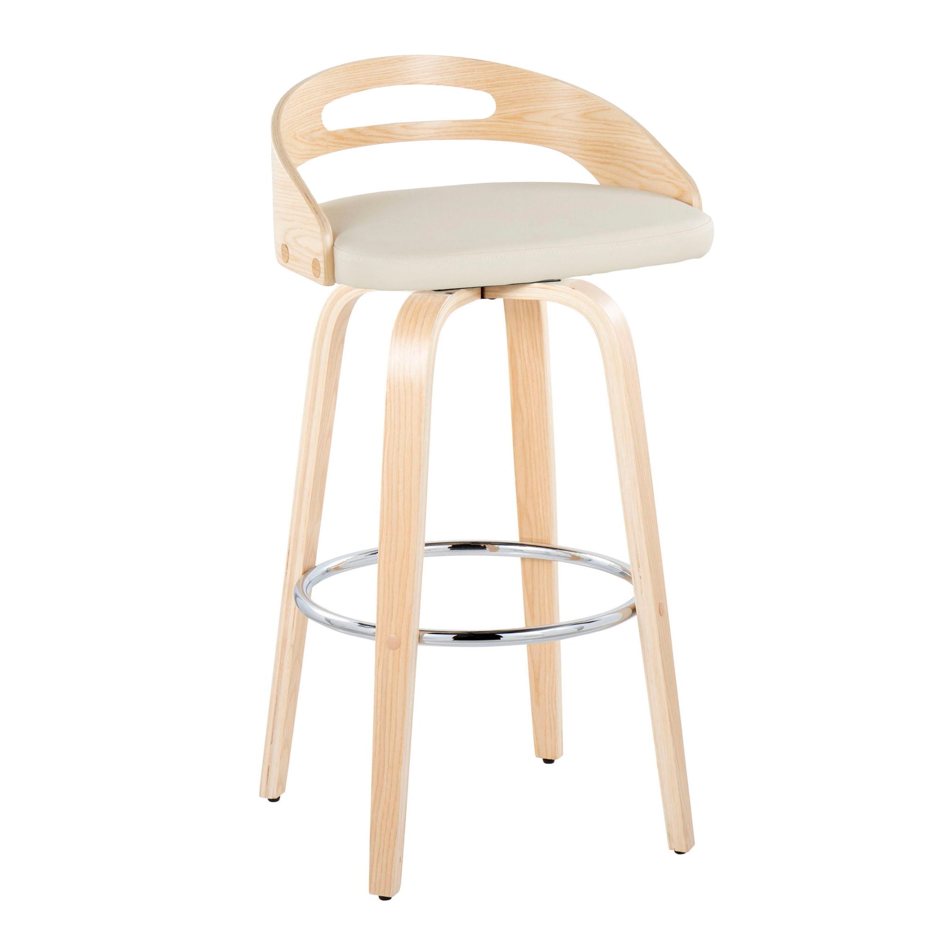 Cassis - Contemporary Fixed Height Barstool With Swivel With Round Footrest (Set of 2) - Natural / Cream