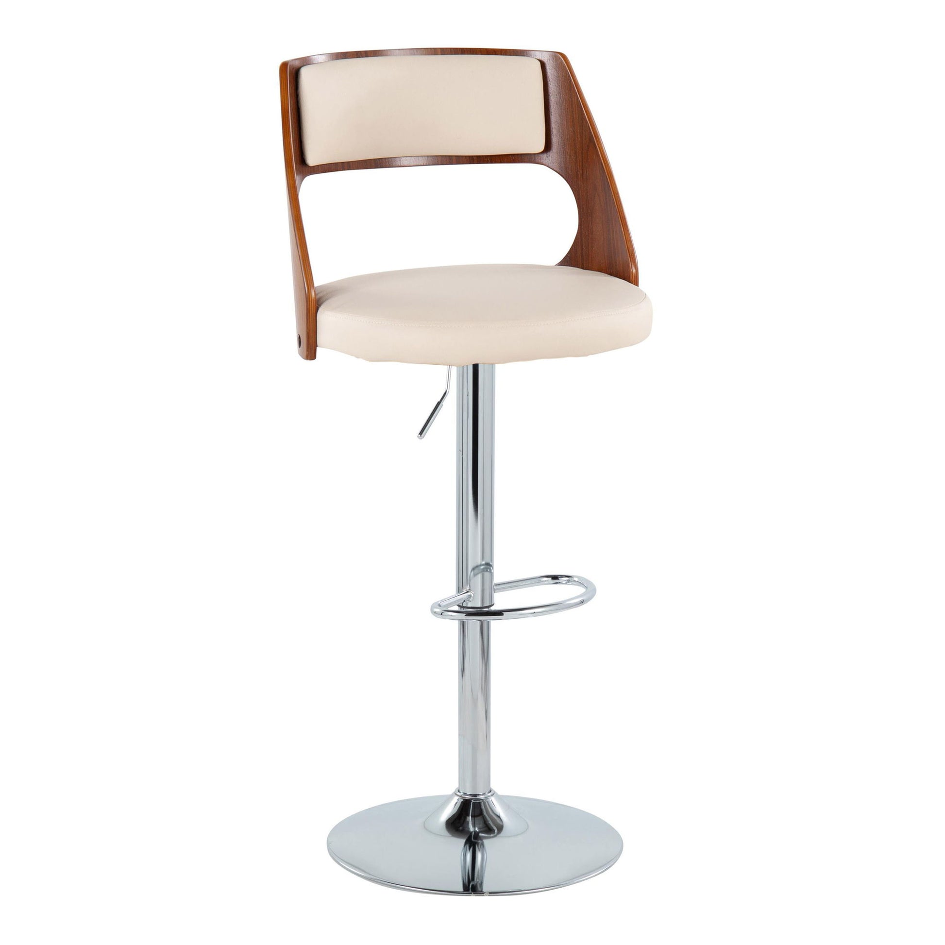 Cecina - Mid-Century Modern Adjustable Height Barstool With Swivel With Oval Footrest (Set of 2) - Chrome / Walnut / Cream