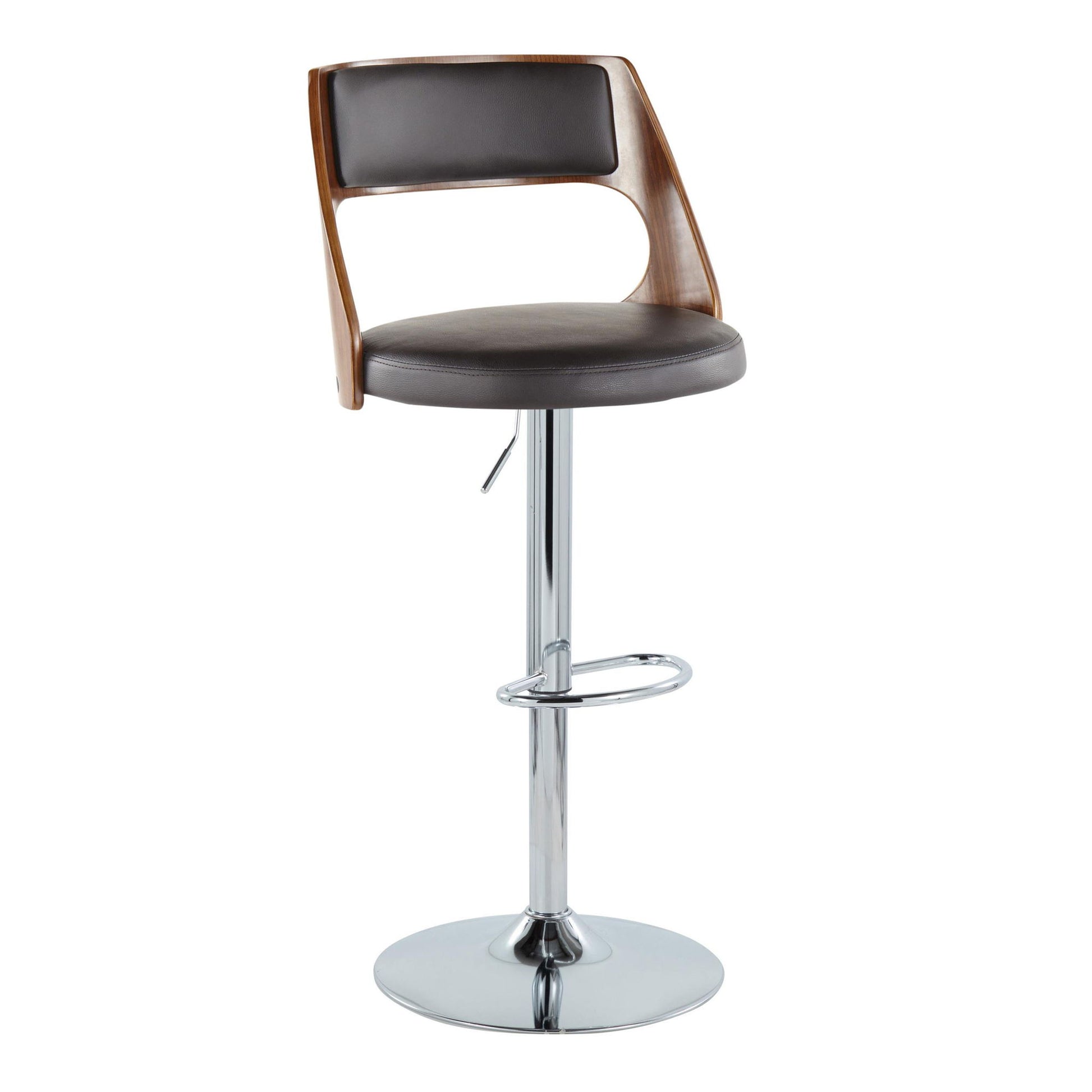 Cecina - Mid-Century Modern Adjustable Height Barstool With Swivel With Oval Footrest (Set of 2) - Chrome / Walnut / Brown