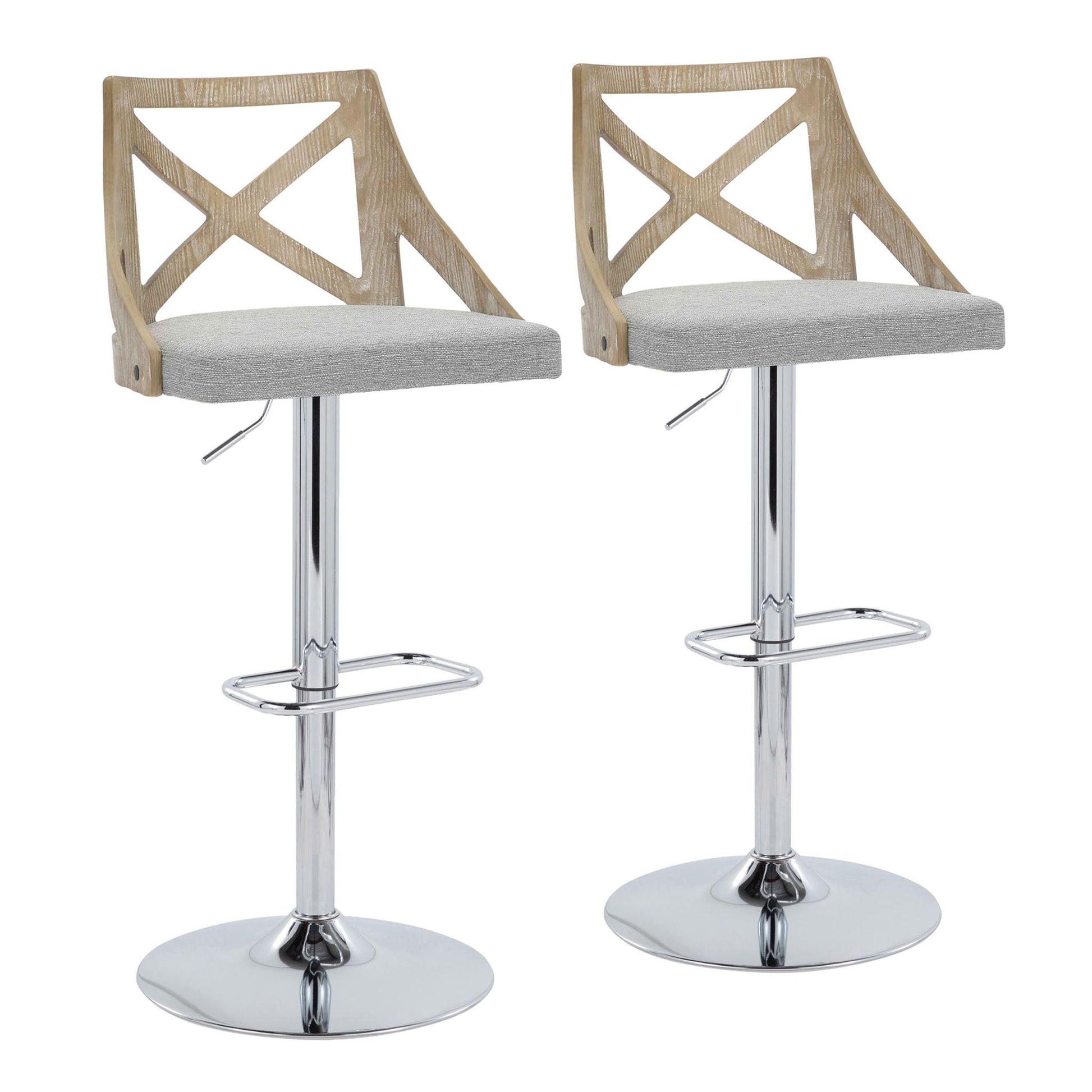 Charlotte - Farmhouse Adjustable Height Barstool With Swivel Rounded Rectangle Footrest (Set of 2) - Chrome / White Washed / Light Gray