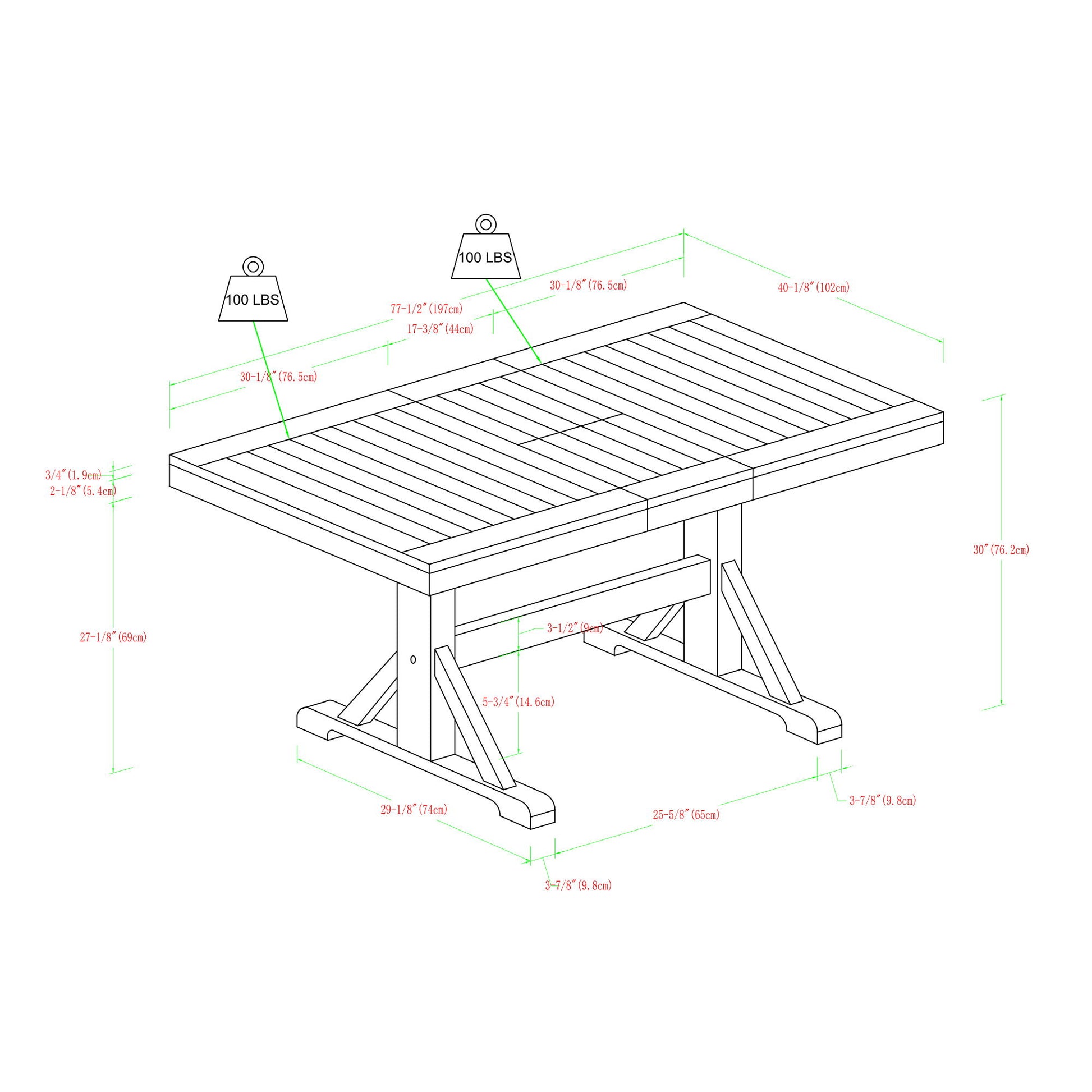 - Classic Trestle-Style Legs: Delight in the timeless elegance of classic trestle-style legs, meticulously designed to not only enhance the table's aesthetic appeal but also provide sturdy support and stability for years of enjoyment.