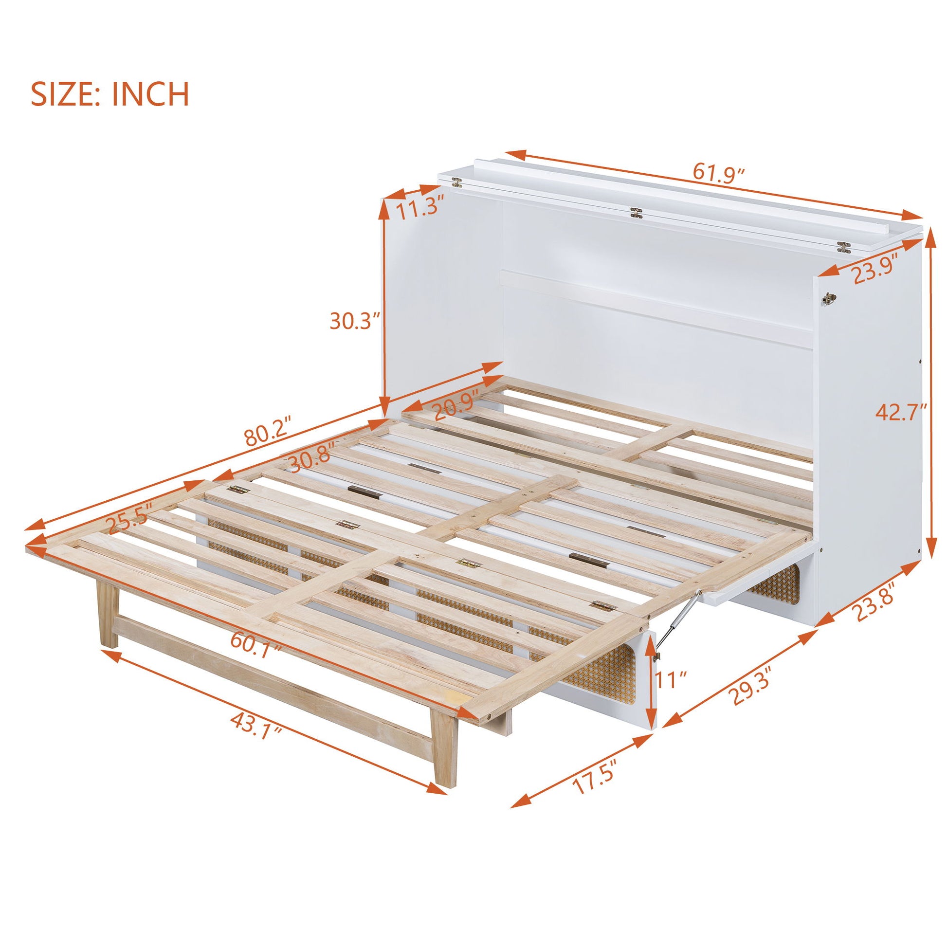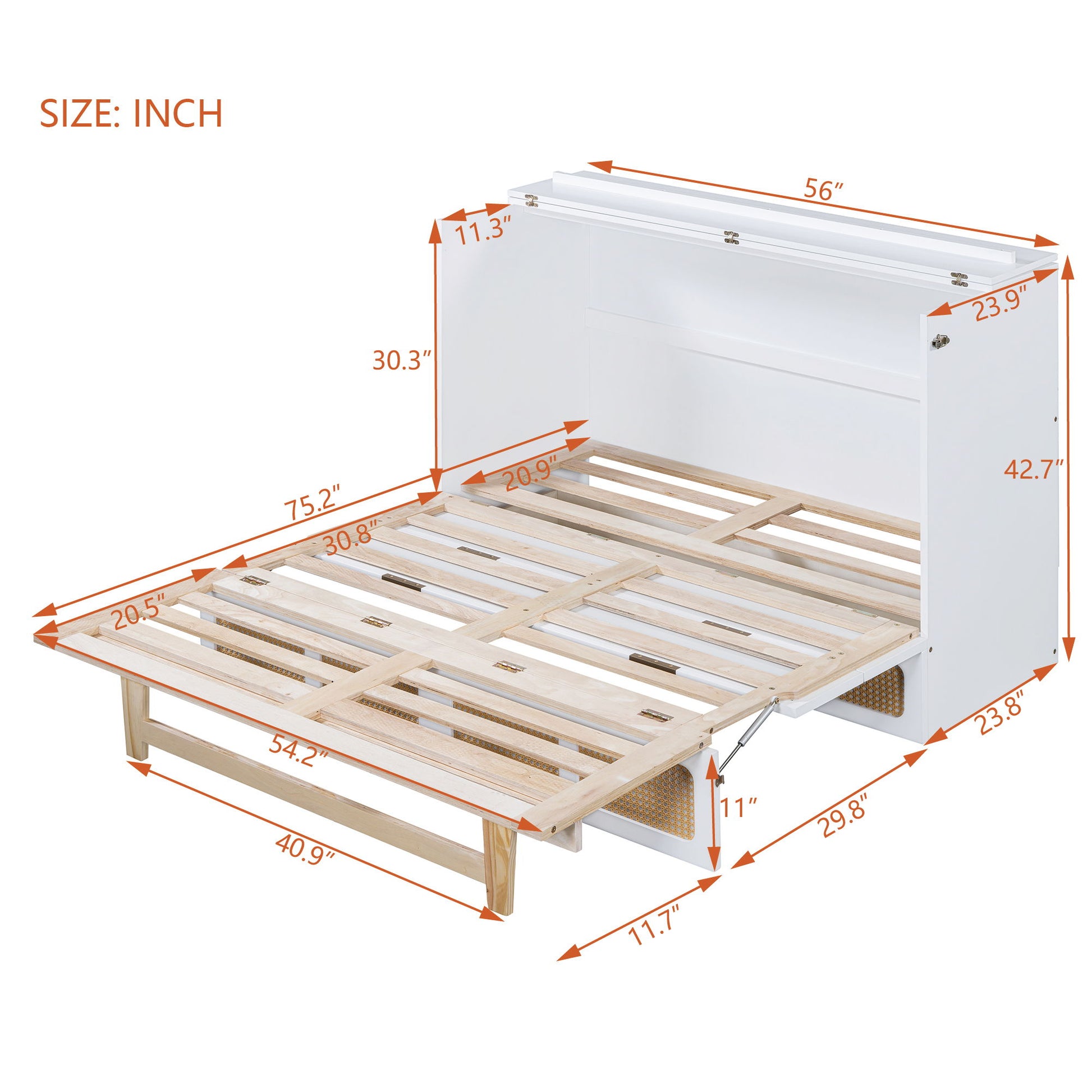 Queen Murphy Bed With Large Storage Drawers - White