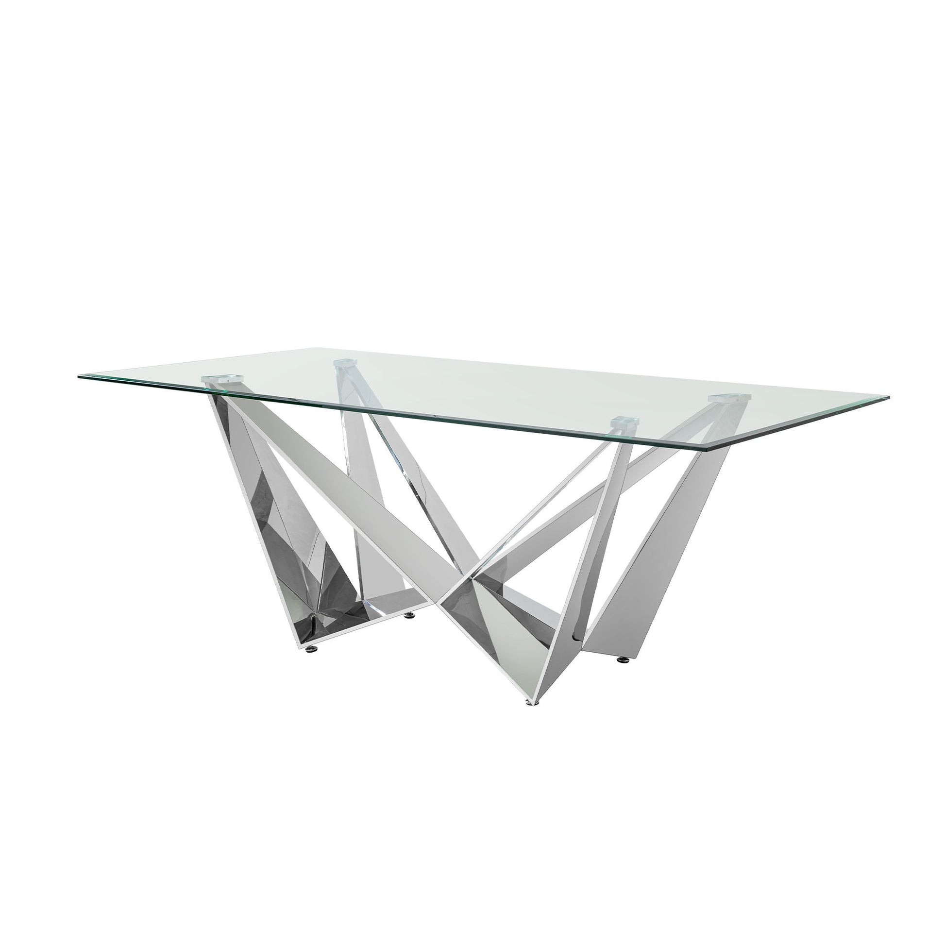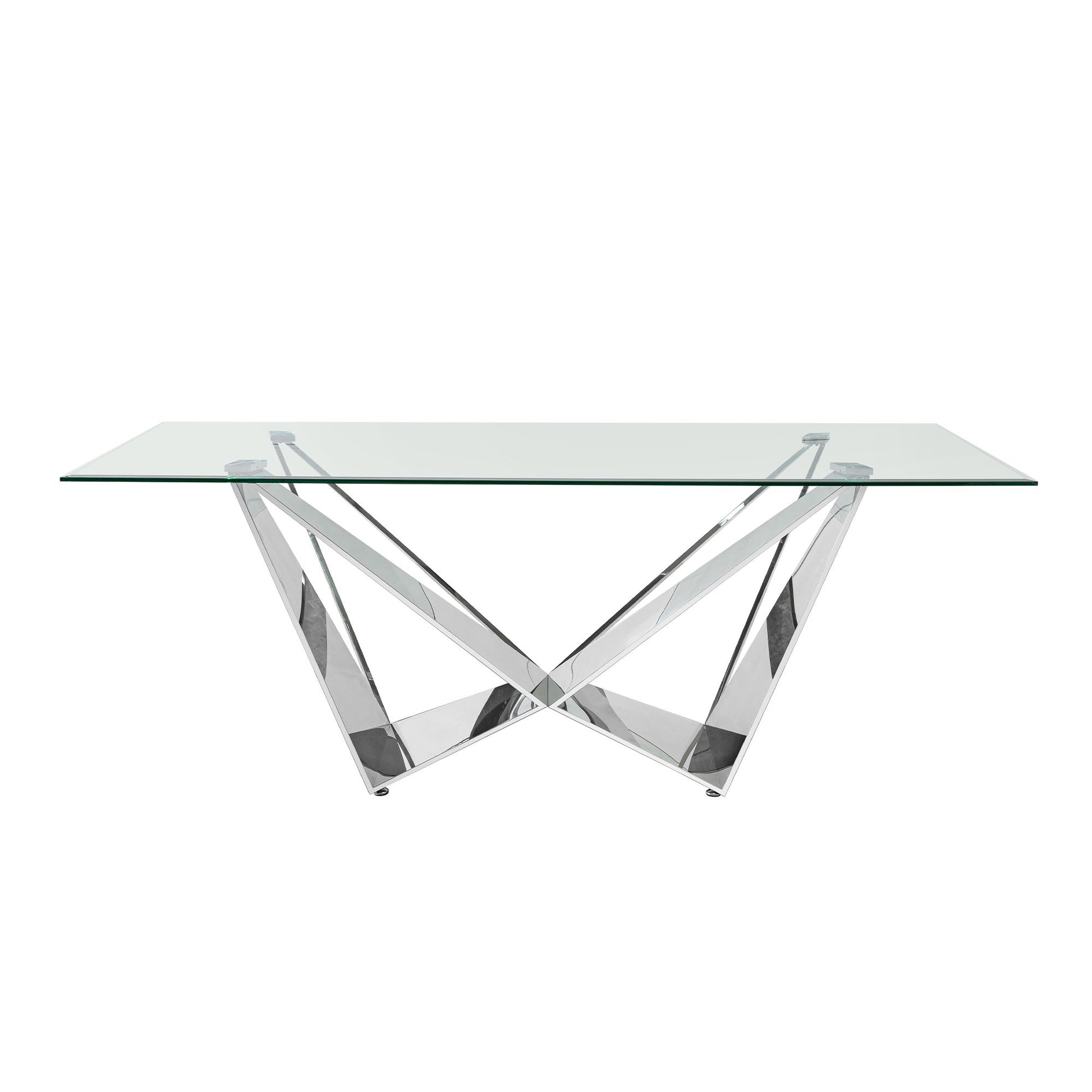 Clear Glass With Polished Stainless Steel Base Dining Table - Silver