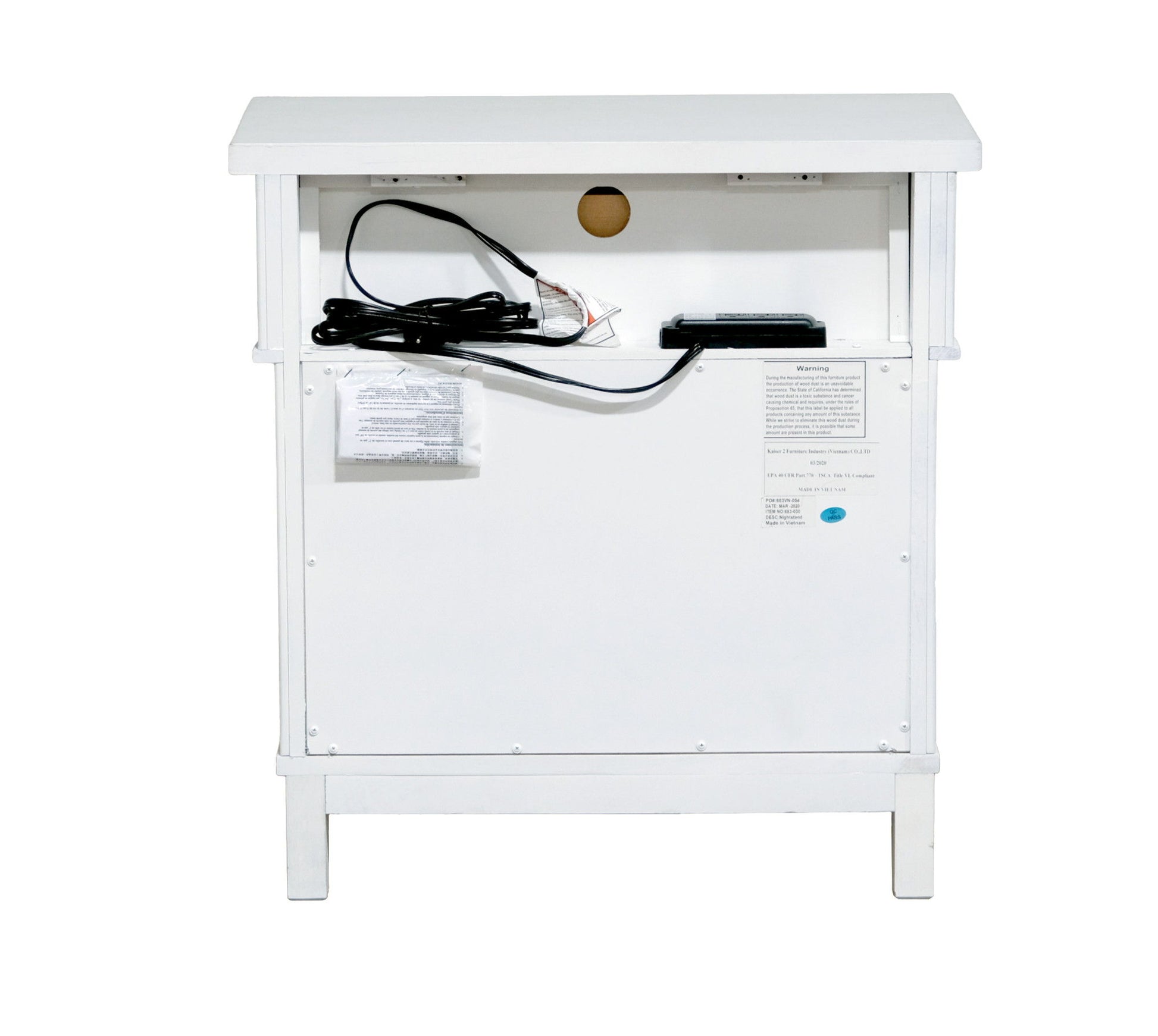 Coastal 3 Drawer Nightstand - White