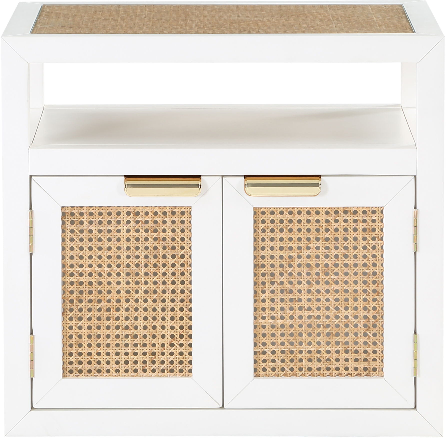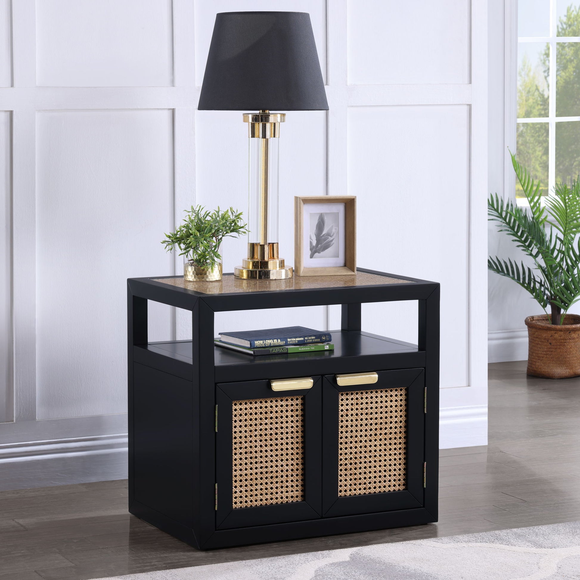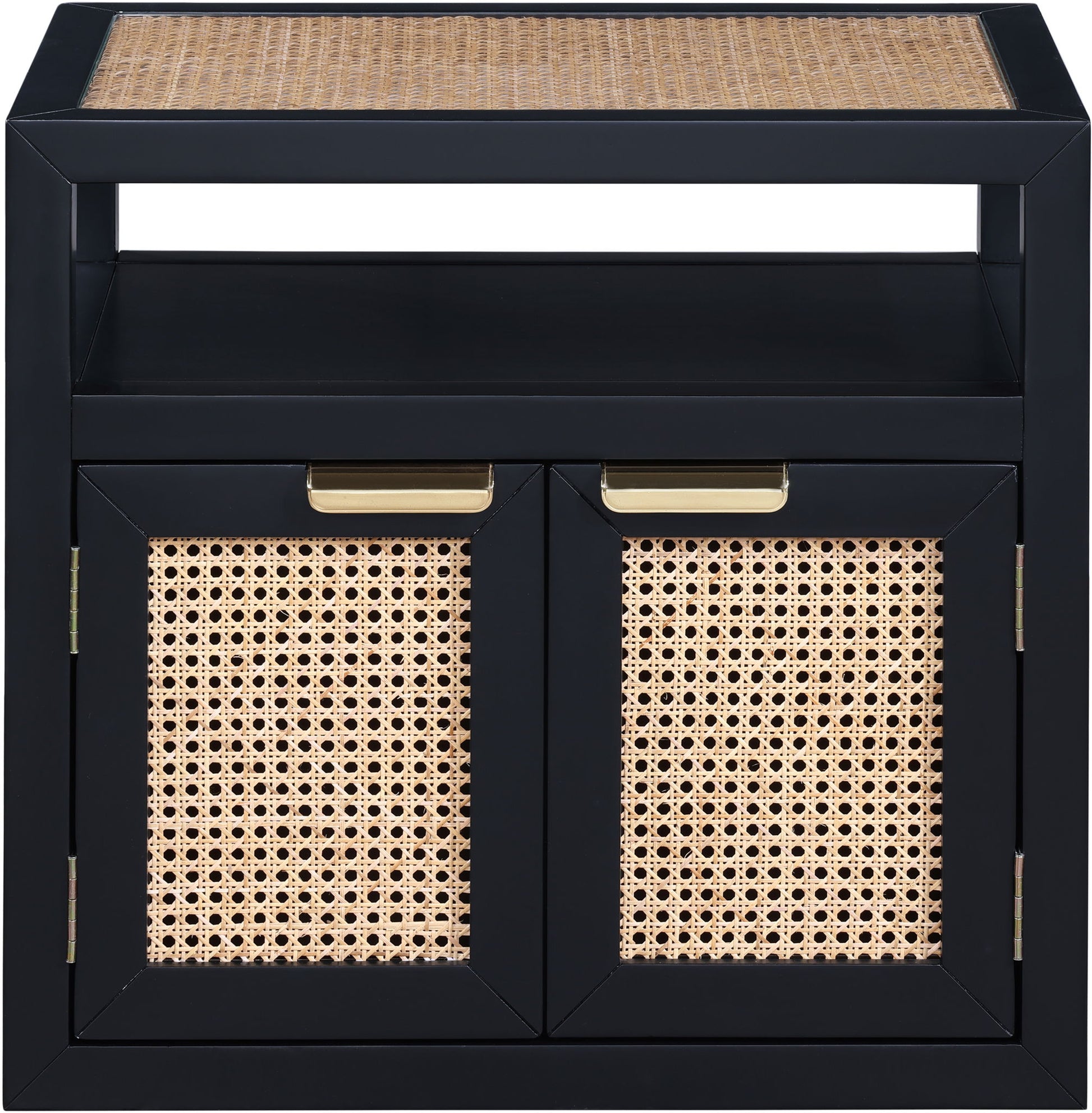 Introduce the essence of midcentury design to your bedroom with the elegant Cole Nightstand. The striking finish and the natural cane tops and door fronts create a beautiful contrast that is sure to catch the eye of anyone who enters the room. The nightstand comes with a complete set of brushed brass and chrome iron handles, making it easy to blend it in with your existing decor and design scheme. With its timeless appeal, this nightstand is perfect for those who appreciate the balance of form and function in their furniture.