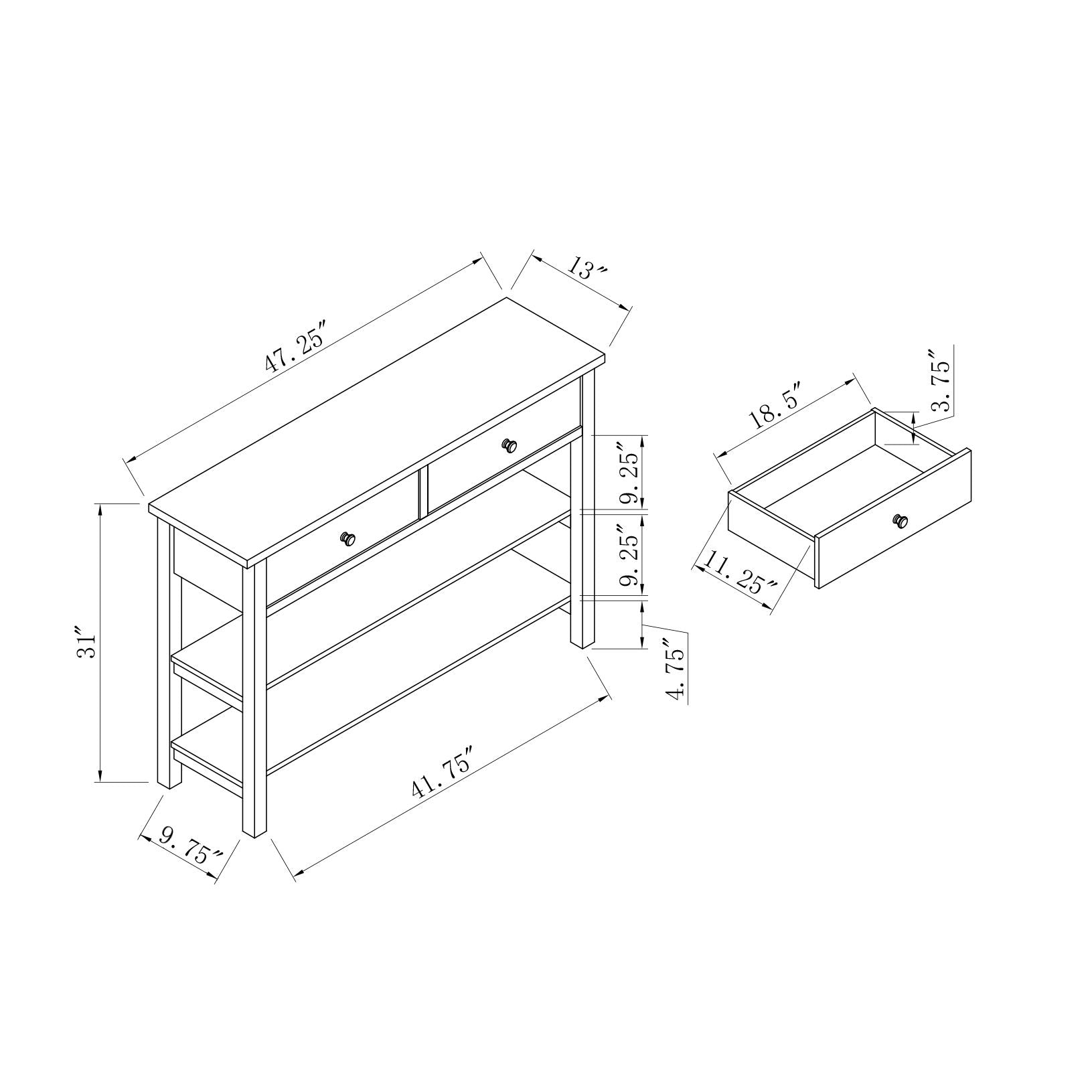Console Table Two Shelf And Two Drawer With Knob Handles - Dark
