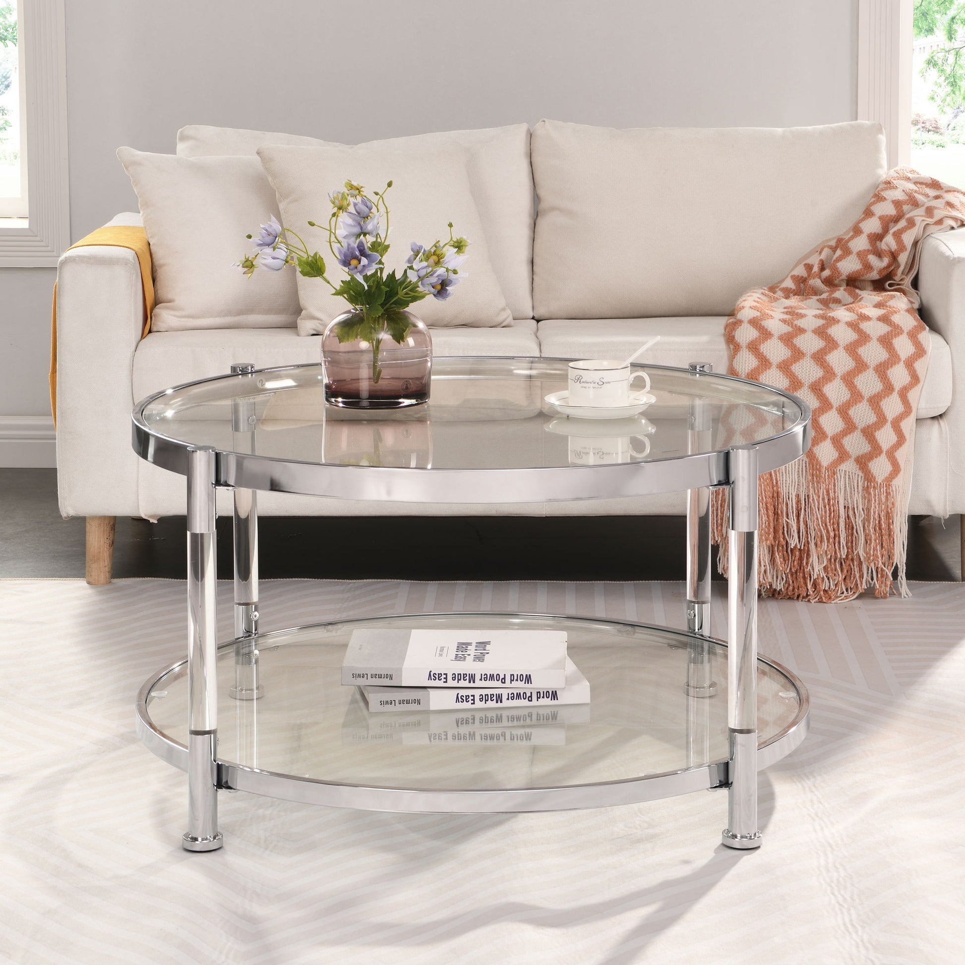 Contemporary Acrylic Coffee Table, Round Tempered Glass Coffee Table - Chrome / Silver