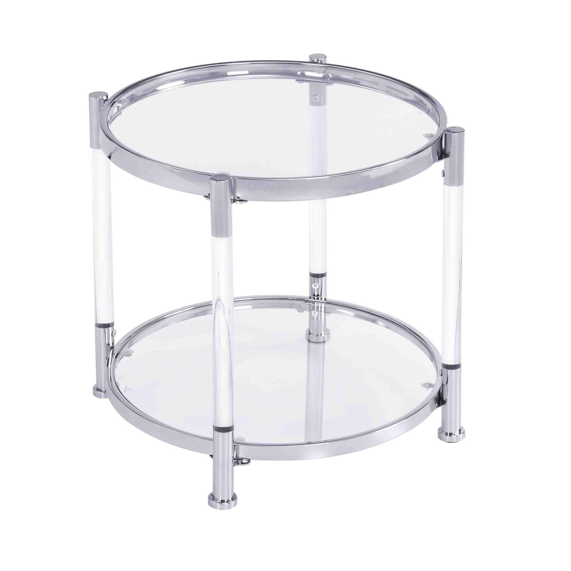 Contemporary Acrylic End Table, Side Table With Tempered Glass Top - Chrome / Silver