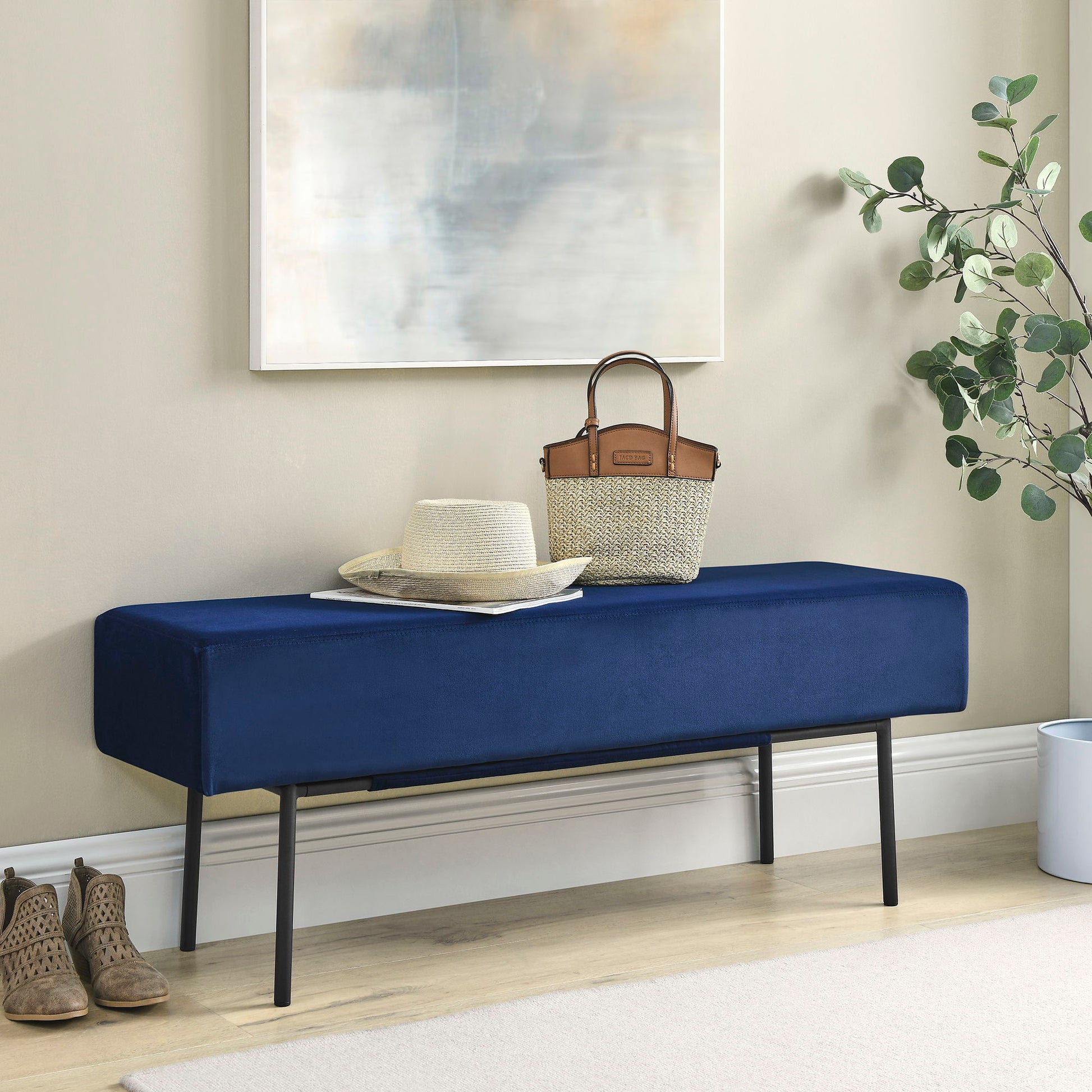 Contemporary Style Bedroom Velvet Upholstered Bench Velvet And Wood - Dark Blue
