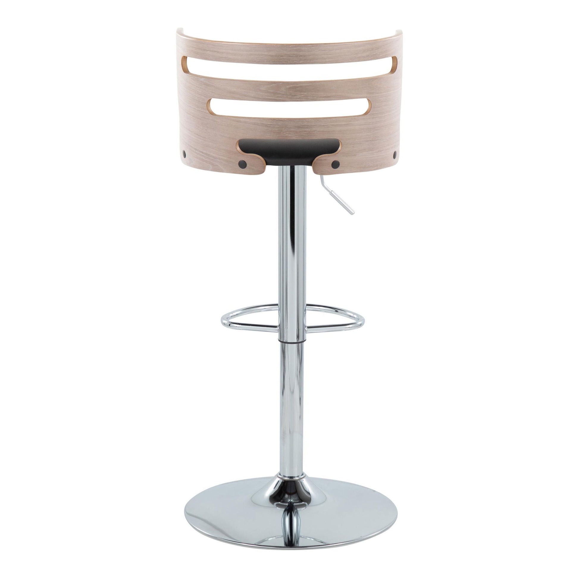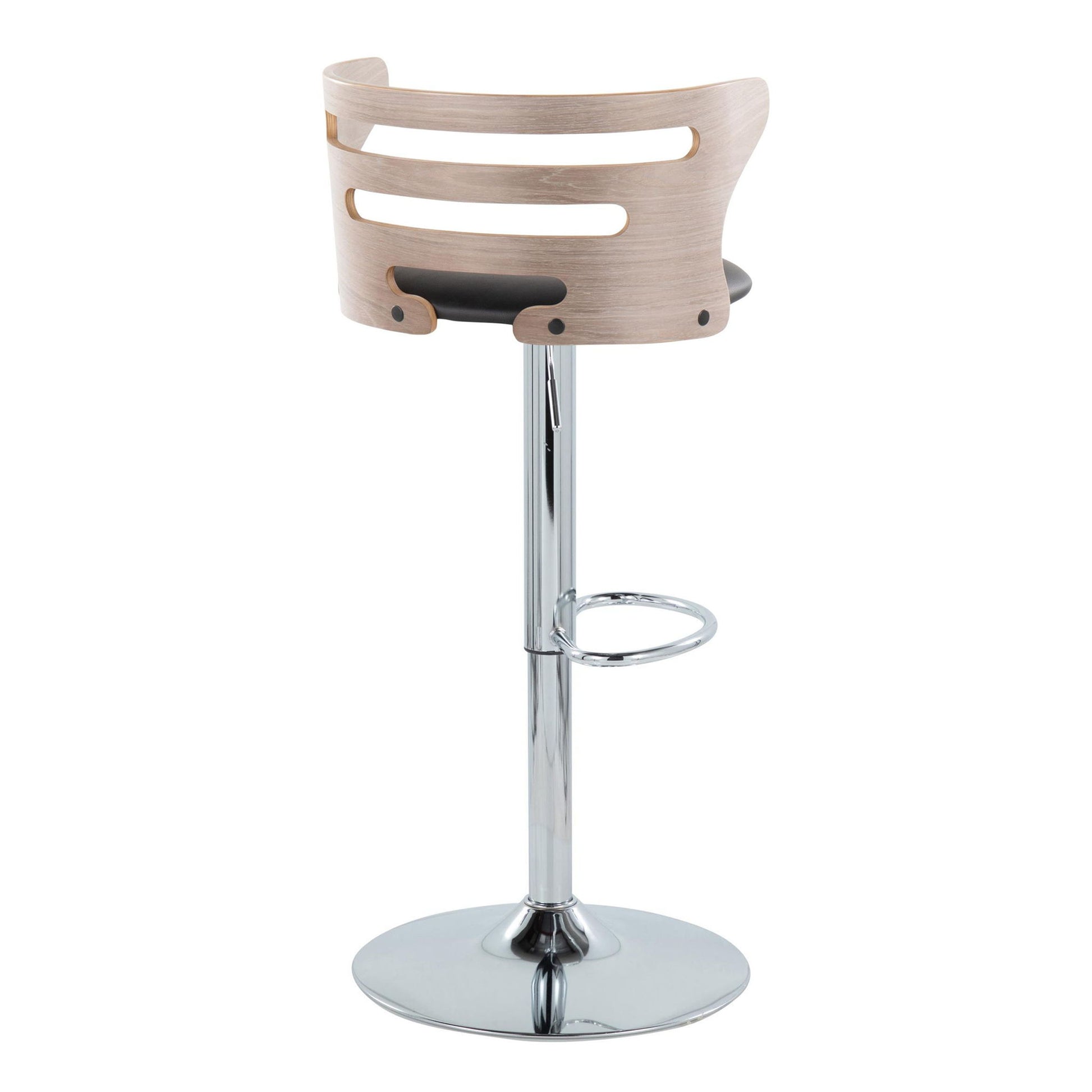 - Sophisticated Design: The Cosi Adjustable Barstool by LumiSource showcases a sophisticated design with a slotted bent wood back, complemented by a padded faux leather seat and polished chrome base and footrest, creating a contemporary and comfortable seating option.