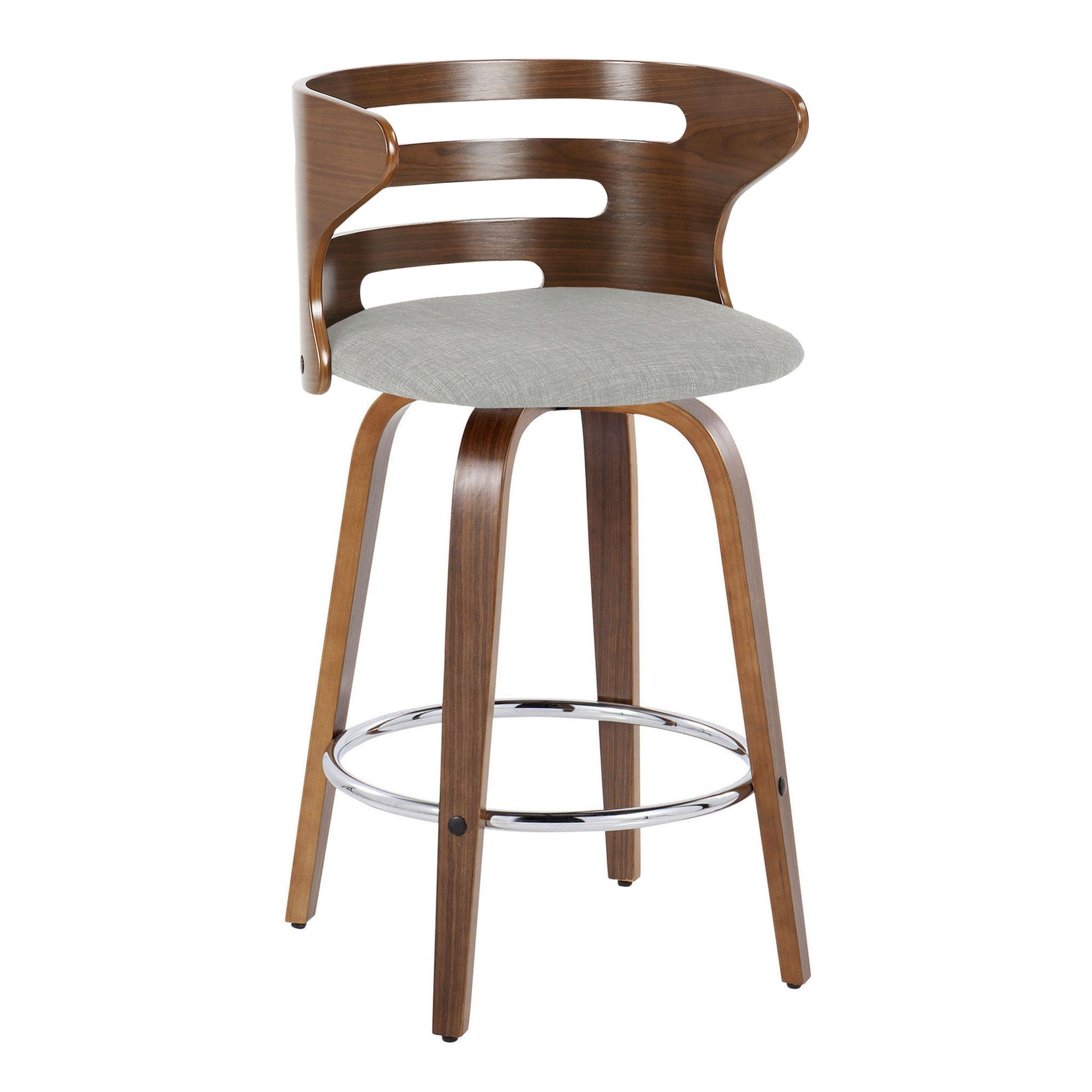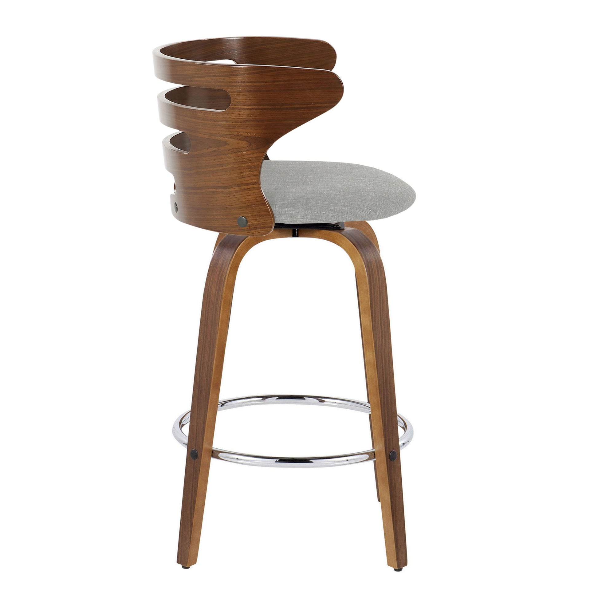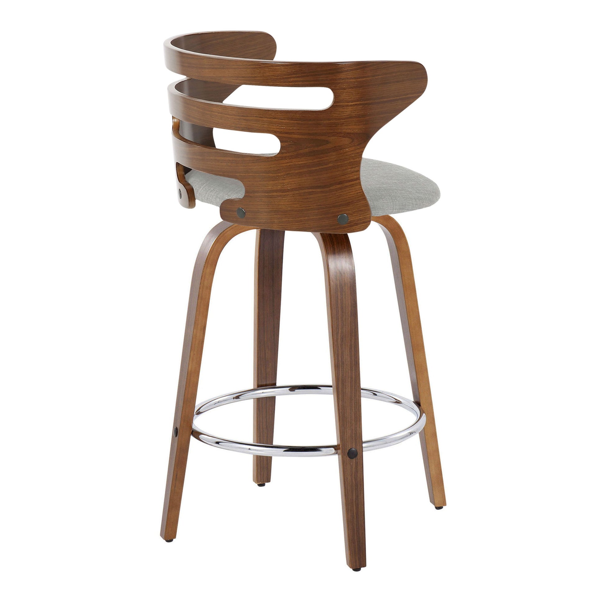 Cosini - Mid-Century Modern Fixed Height Barstool With Swivel With Round Footrest (Set of 2) - Walnut / Gray