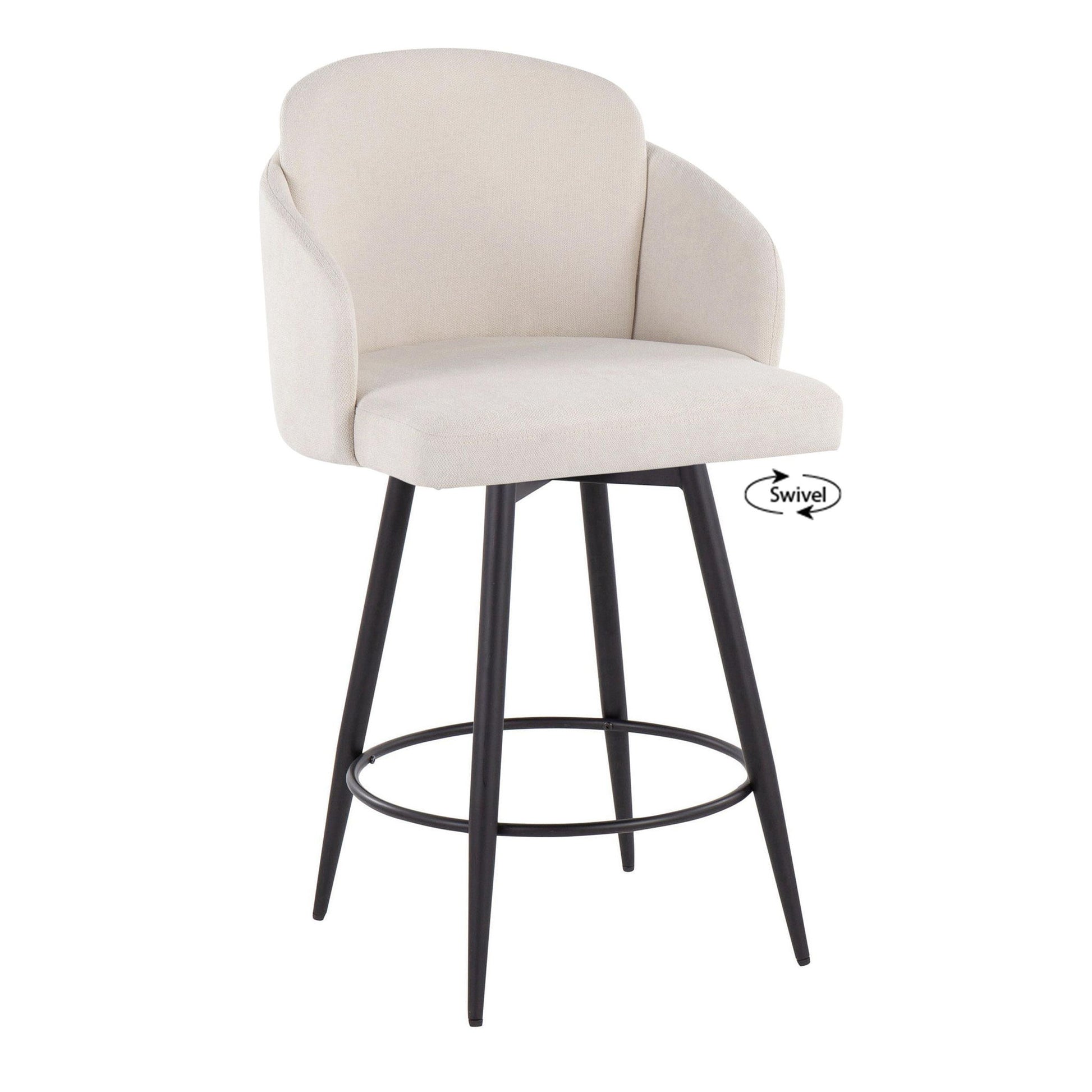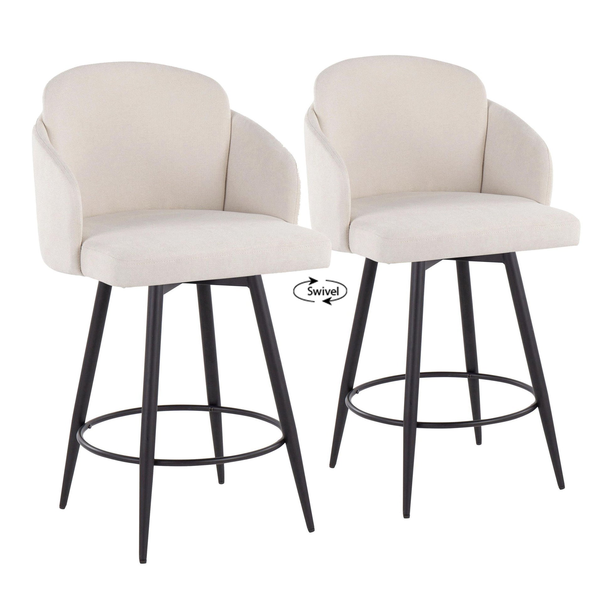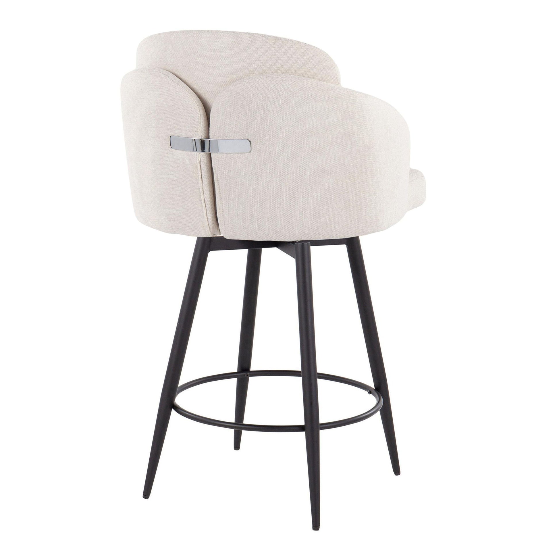Dahlia - Contemporary Fixed Height Counter Stool With Round Footrest (Set of 2) - Matte Black / Cream / Chrome