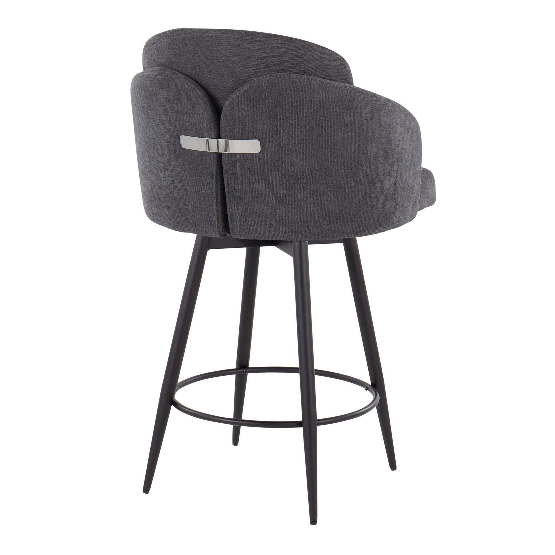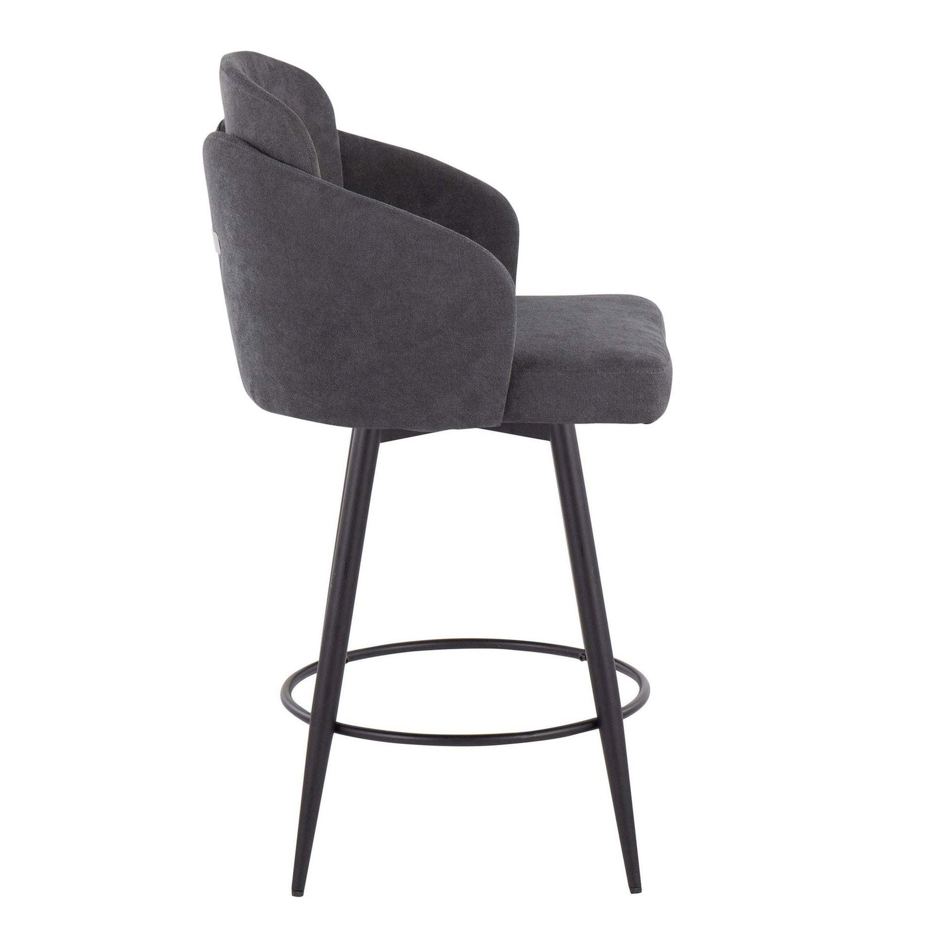 Dahlia - Contemporary Fixed Height Counter Stool With Round Footrest (Set of 2) - Matte Black / Gray / Chrome