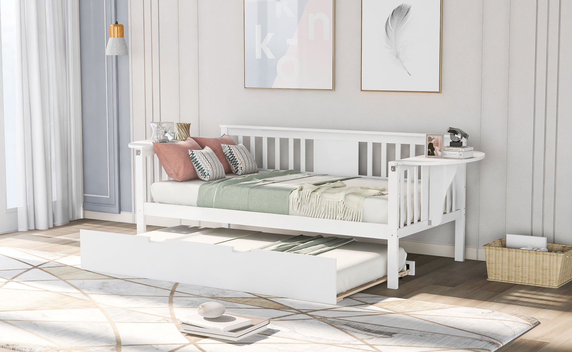 Twin Daybed With Trundle Bed, Sofa Bed For Bedroom - White