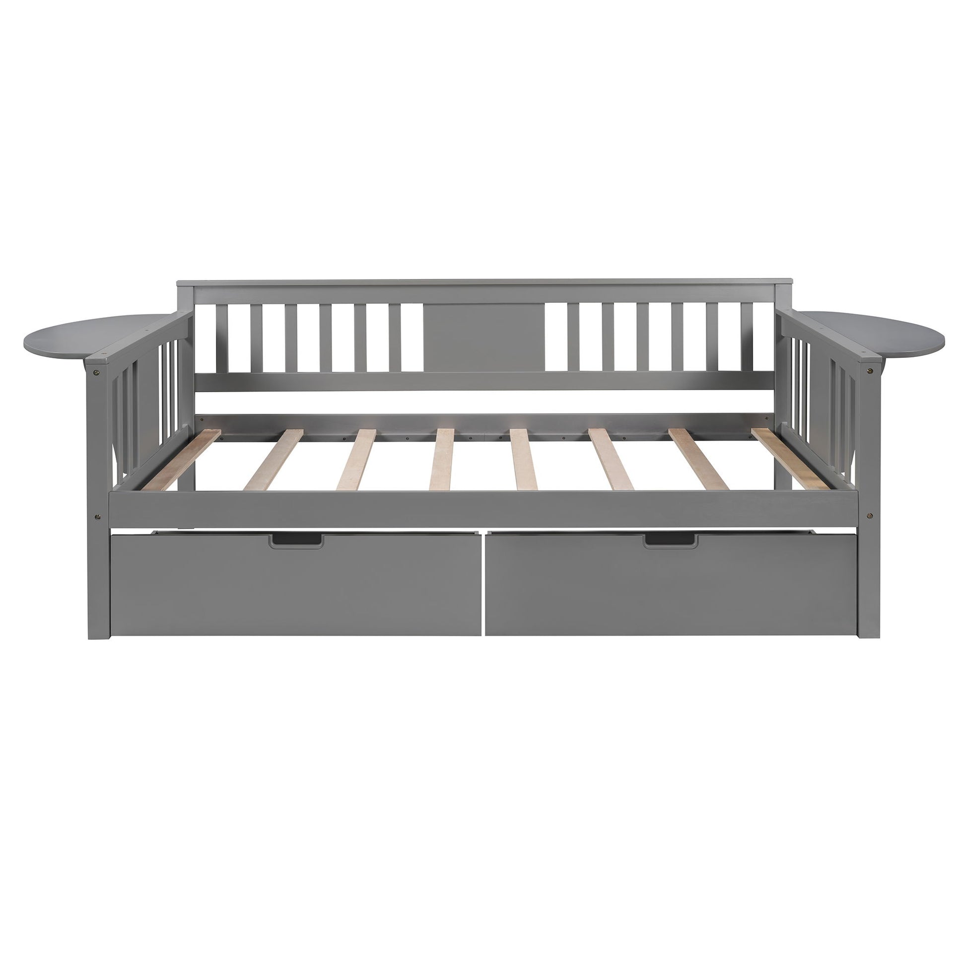 Full Size Daybed With 2 Drawers, Slat Support - Gray