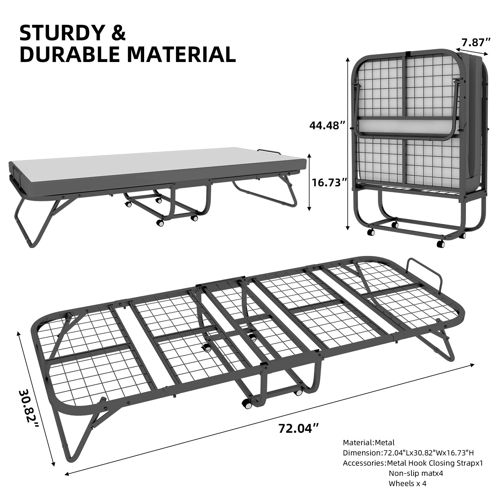 - Easy Transportation and Storage: Folds into a slim profile with wheels, great as a portable or camping bed.