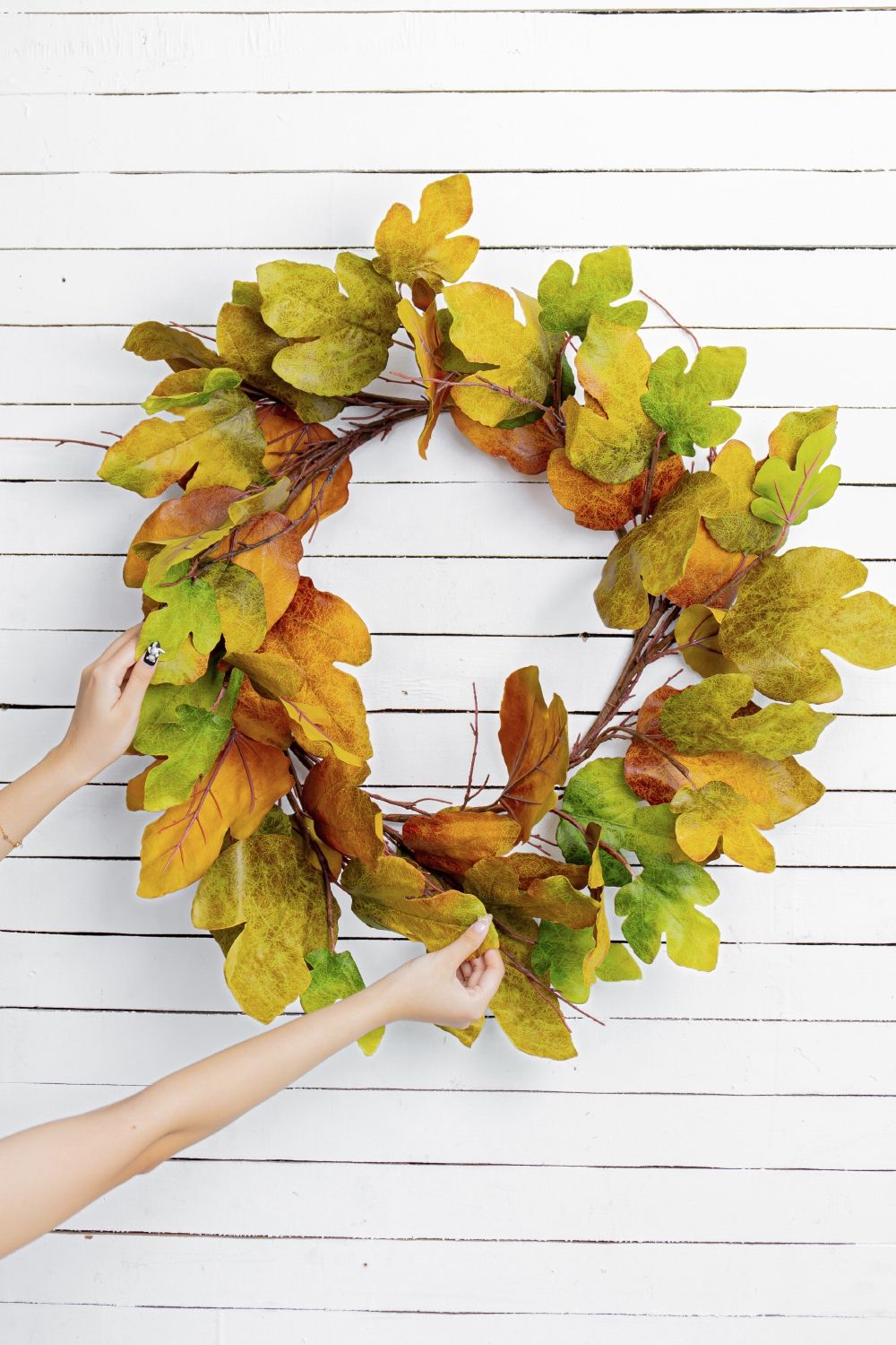 - Hand-Dyed Variation: Each leaf in this wreath may exhibit unique color variations due to the hand-dying process, adding to its charm and individuality.