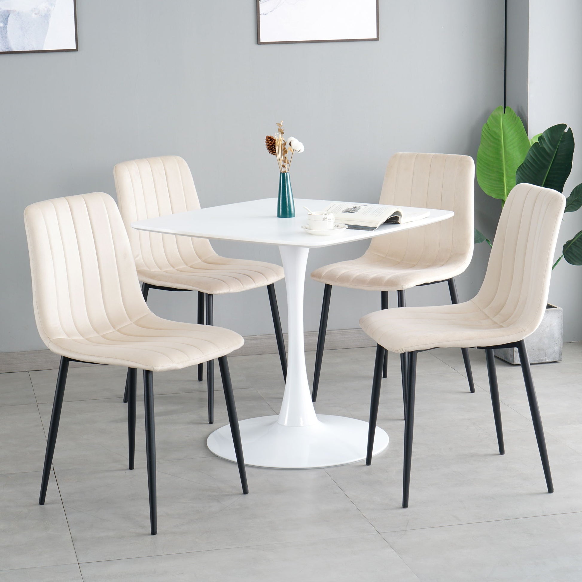Modern Velvet Dining Chair (Set of 4) With Cushion Seat Metal Legs, Upholstered Side Chair For Kitchen And Living Room - Cream / Black