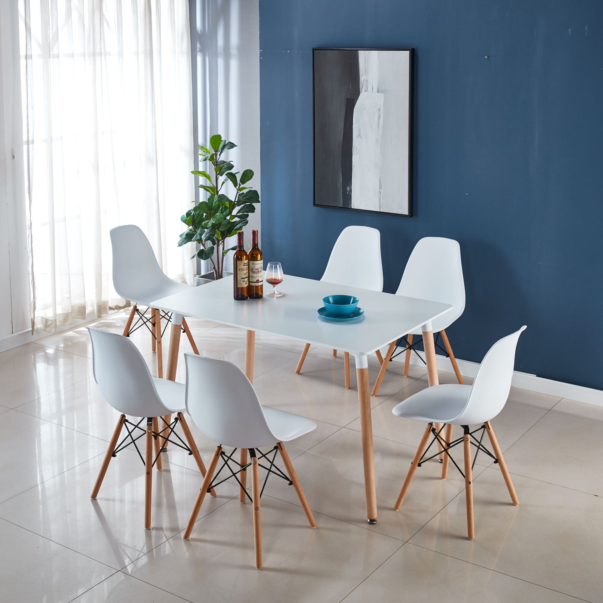 - Versatile Dining Set - This dining set includes chairs and a dining table with metal legs, perfect for accommodating six people. It features a mid-century design with an MDF table top, suitable for dining rooms, offices, or kitchens.