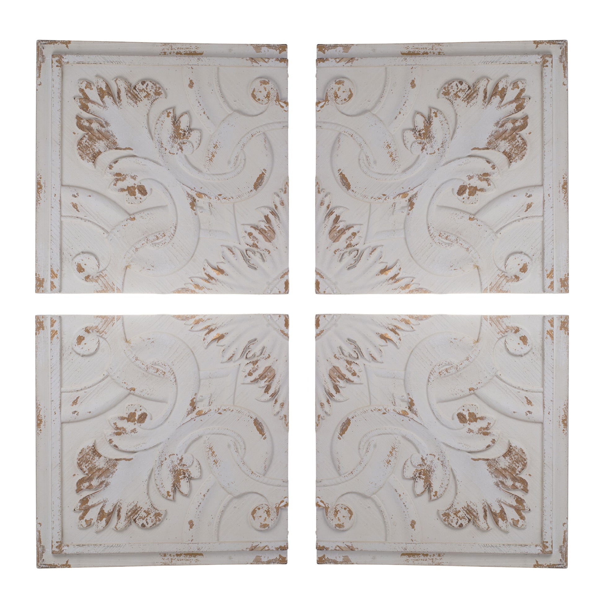 Distressed Wooden Square Wall Panels (Set of 4) - White