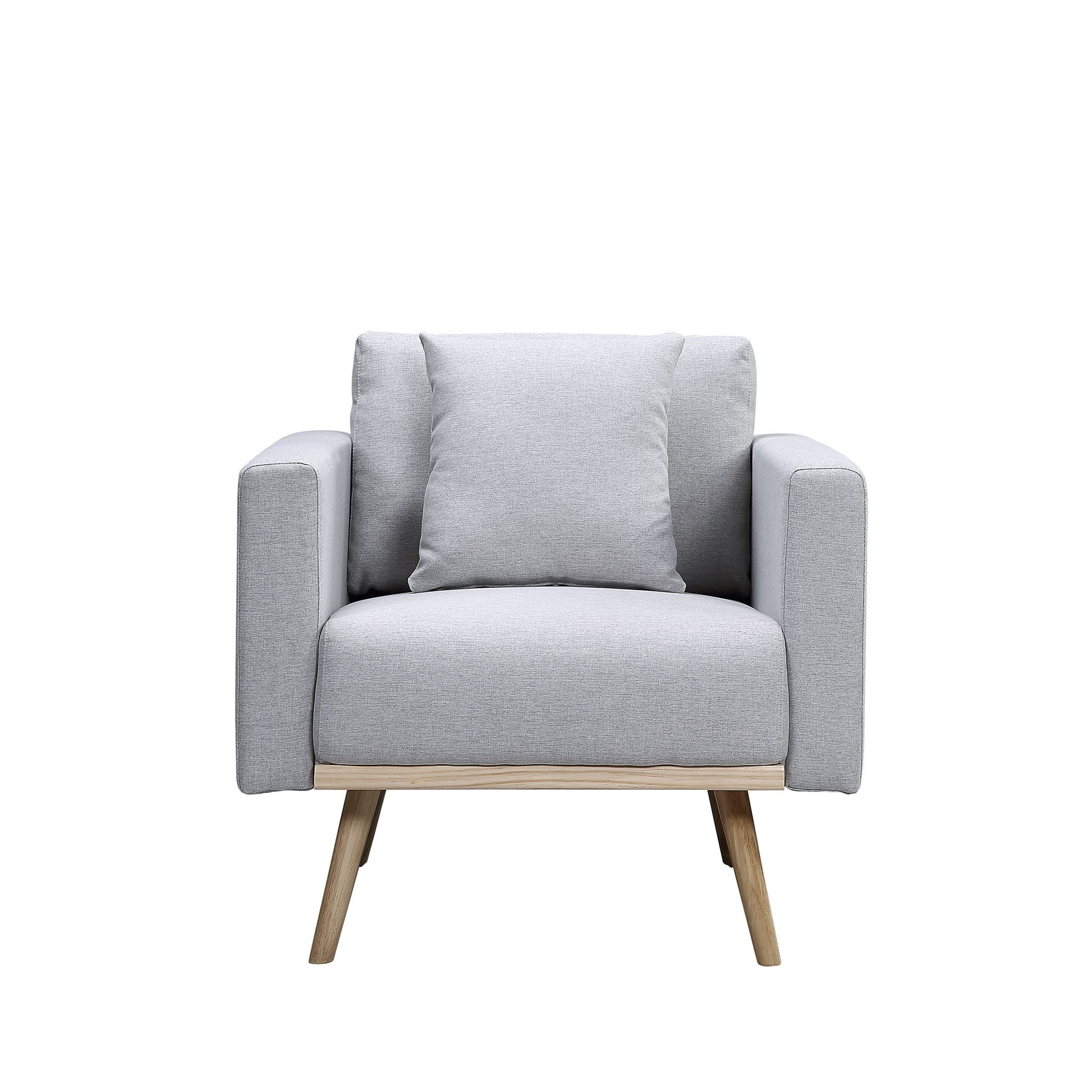 - This mid-century modern chair comes with 1 pillow, USB charging ports, and pocket for your magazine, books, or hold your charging phone. The square arms and round tapered solid wood legs with a bottom wood trim offers the trendiest look for your home. Comfortable cushion seating and linen fabric, stylish design, and quality material. Complete your living room dcor with the Easton collection.