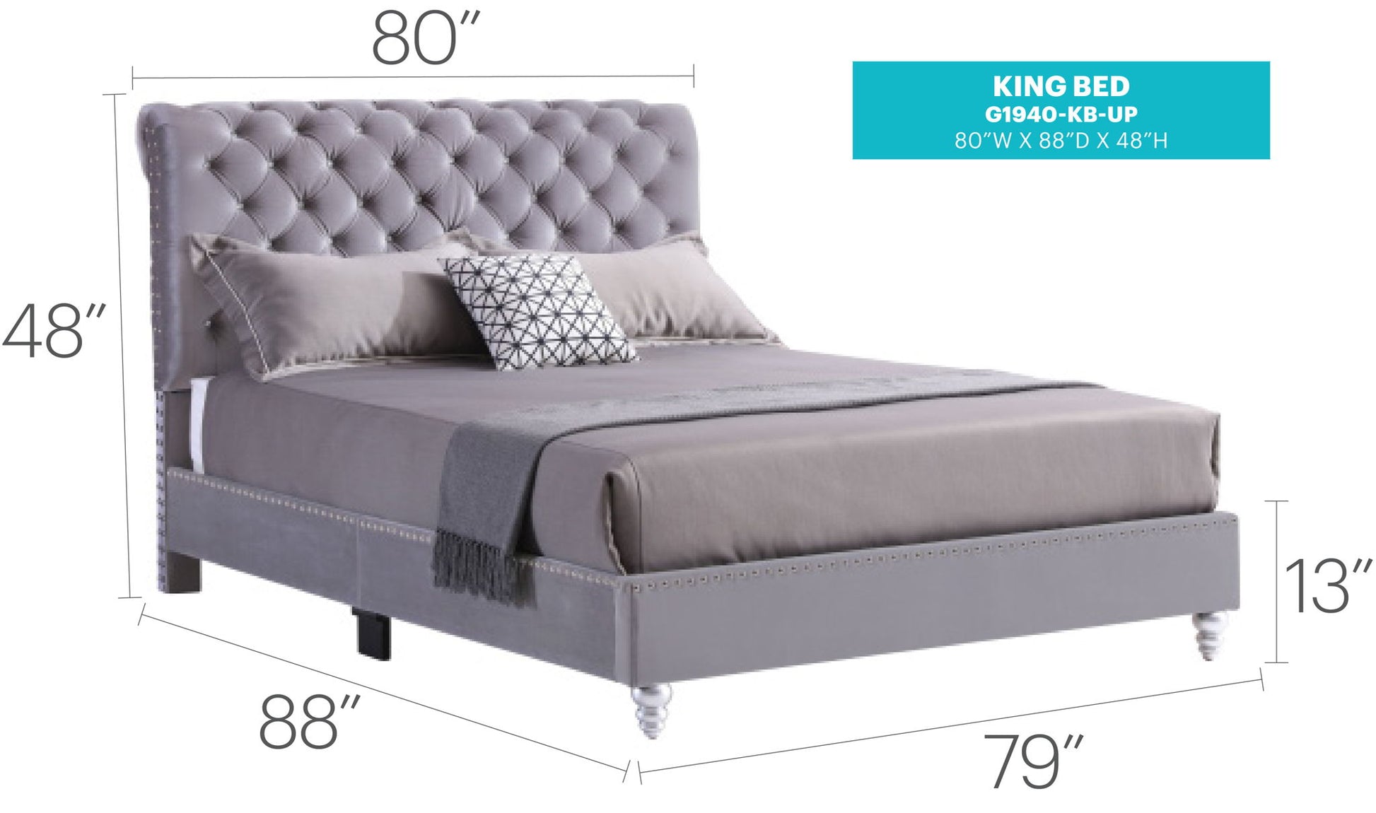 - Hand Applied Nailheads: The entire bed is accented with hand applied nailheads for a stylish touch.