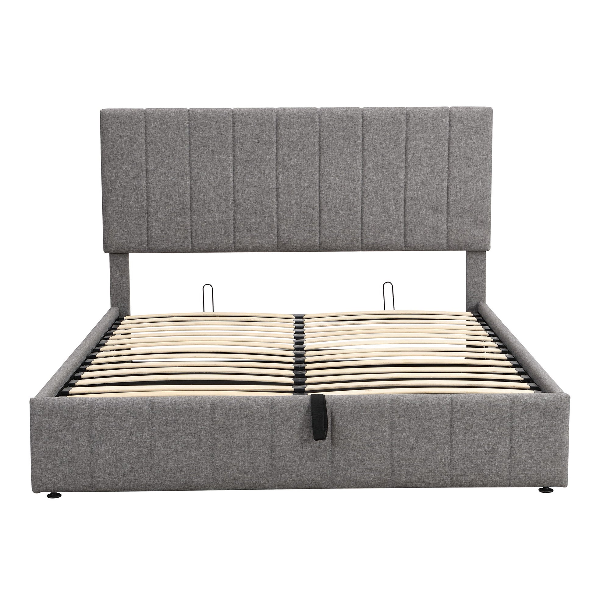 Queen Size Upholstered Platform Bed With A Hydraulic Storage System - Gray