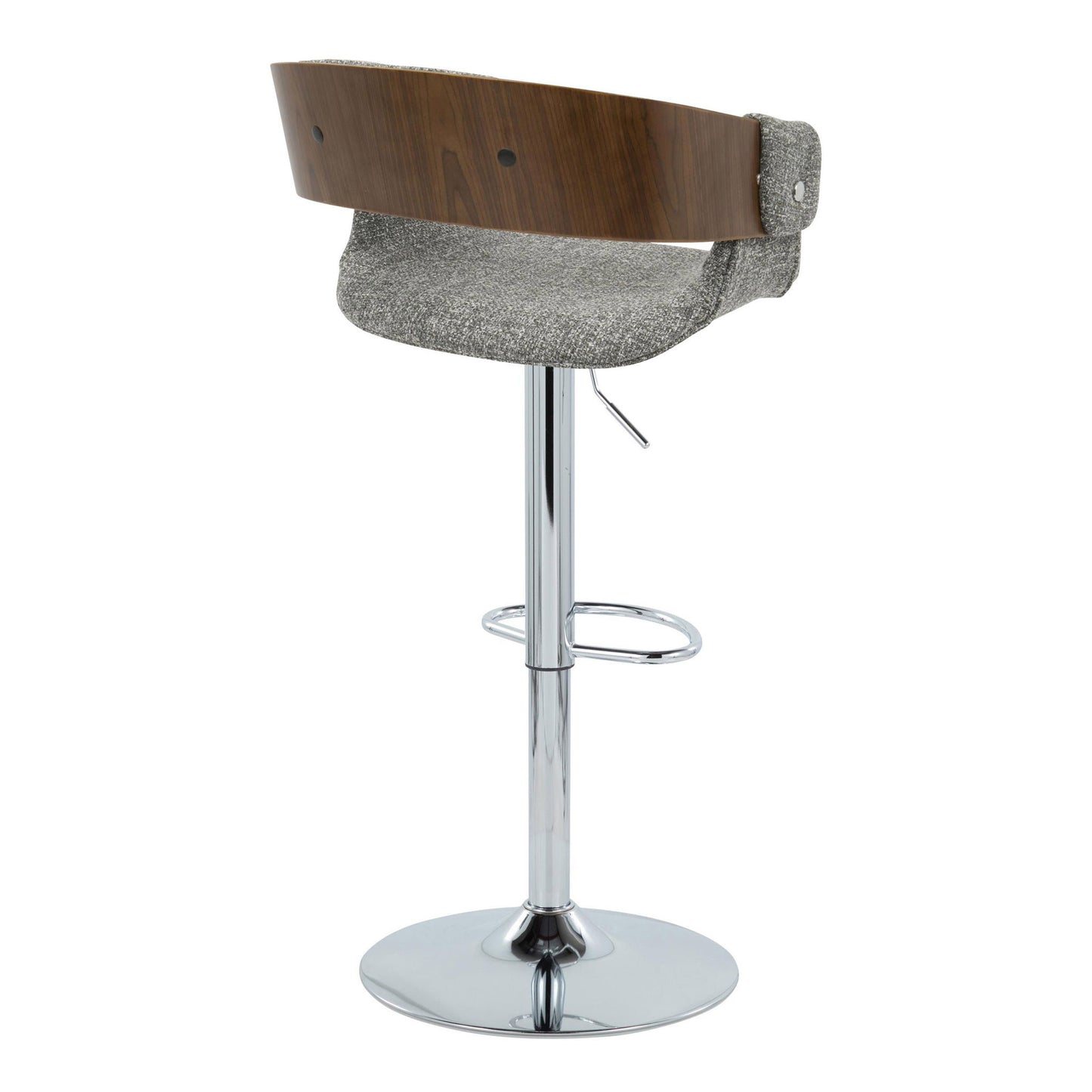 Elisa - Mid-Century Modern Adjustable Barstool With Swivel With Oval Footrest (Set of 2) - Chrome / Walnut / Gray