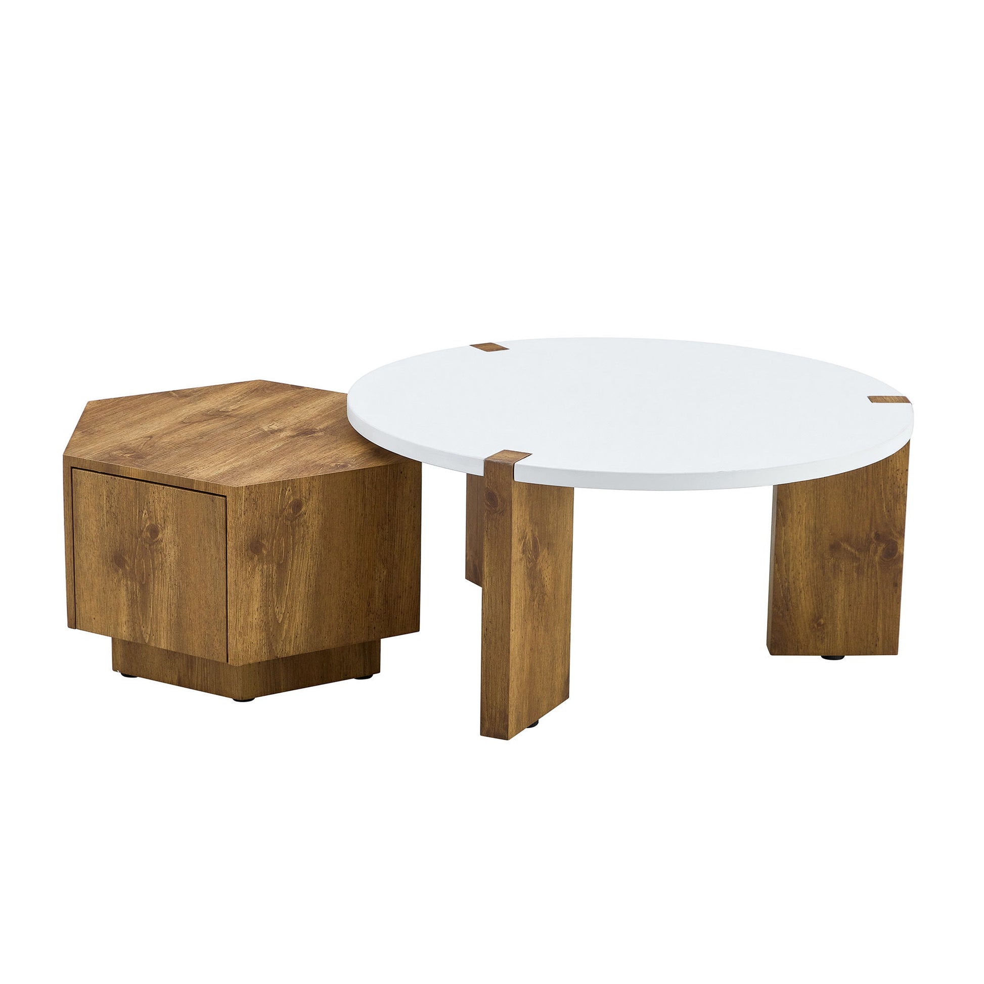 - Overall Size Matching: The set includes a circular coffee table with a diameter of 33.4 inches and a height of 16 inches, as well as a hexagonal side table with a longest edge of 20.3 inches and a height of 14 inches.
