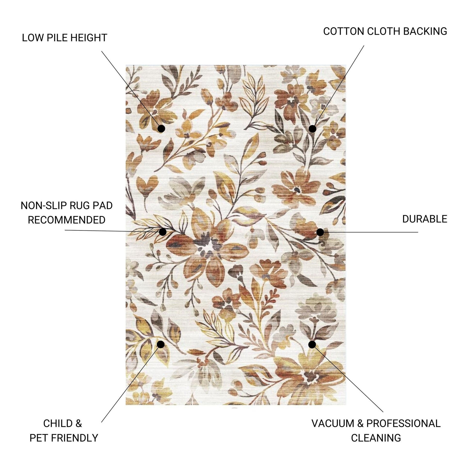 - Floral Charm: The Fenix Collection area rug transforms any living space into a cozy haven with its exquisite floral charm, featuring captivating patterns and intricate design elements in natural earth tones.