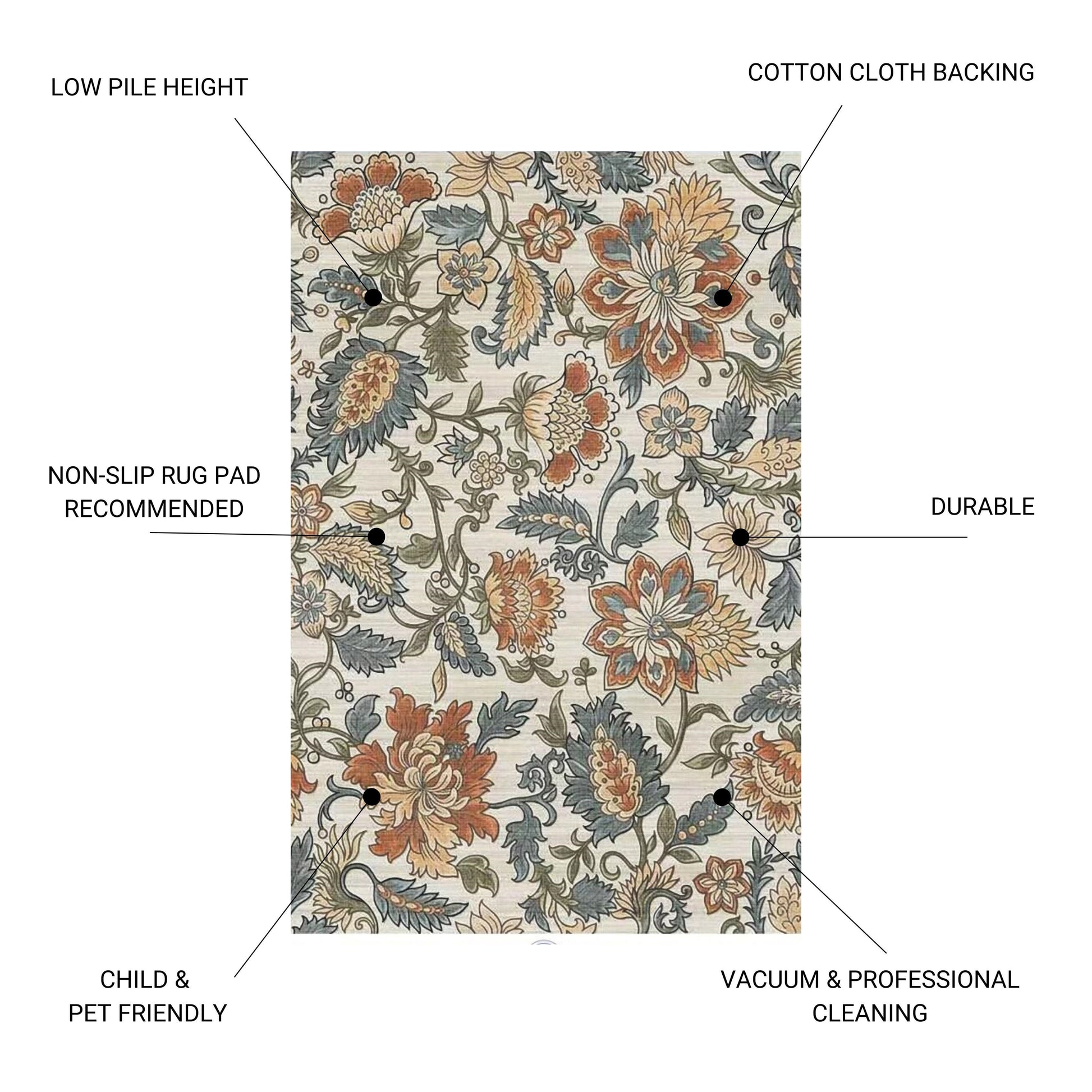- Floral Charm: The Fenix Collection area rug transforms your living space into a cozy haven with its exquisite floral charm. The rug features a harmonious blend of natural earth tones, captivating patterns, and intricate design elements, making it a perfect addition to any room.
