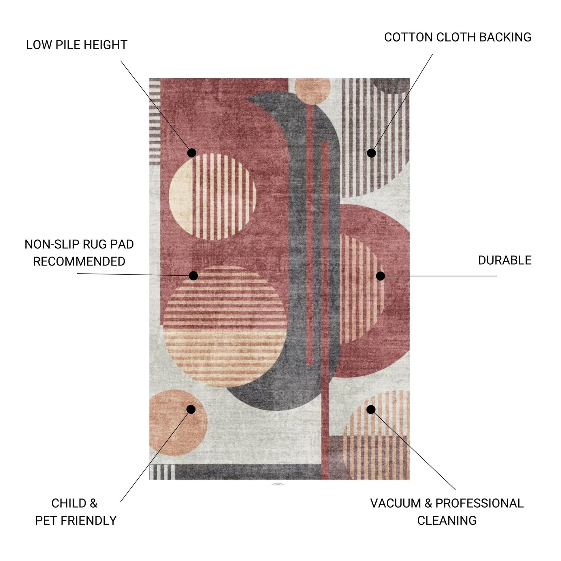 - Durability and Practicality: These rugs are crafted to withstand high traffic areas, making them kid and pet friendly. The low pile design allows easy placement under furniture and in entryways without obstructing doorways.