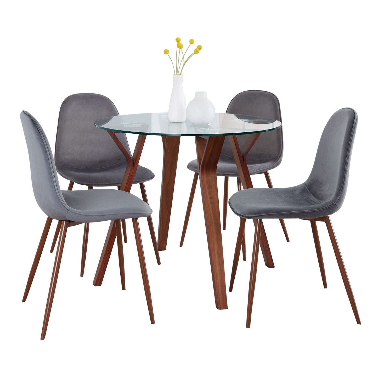 Folia - 5 Piece Round Pebble Mid-Century Modern Dining Set - Walnut / Gray