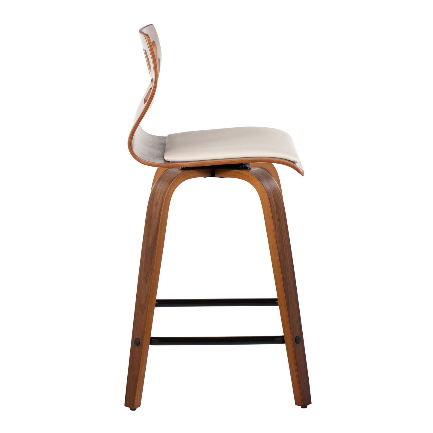 Folia - Mid-Century Modern Fixed Height Counter Stool With Swivel With Square Footrest (Set of 2) - Walnut / Cream